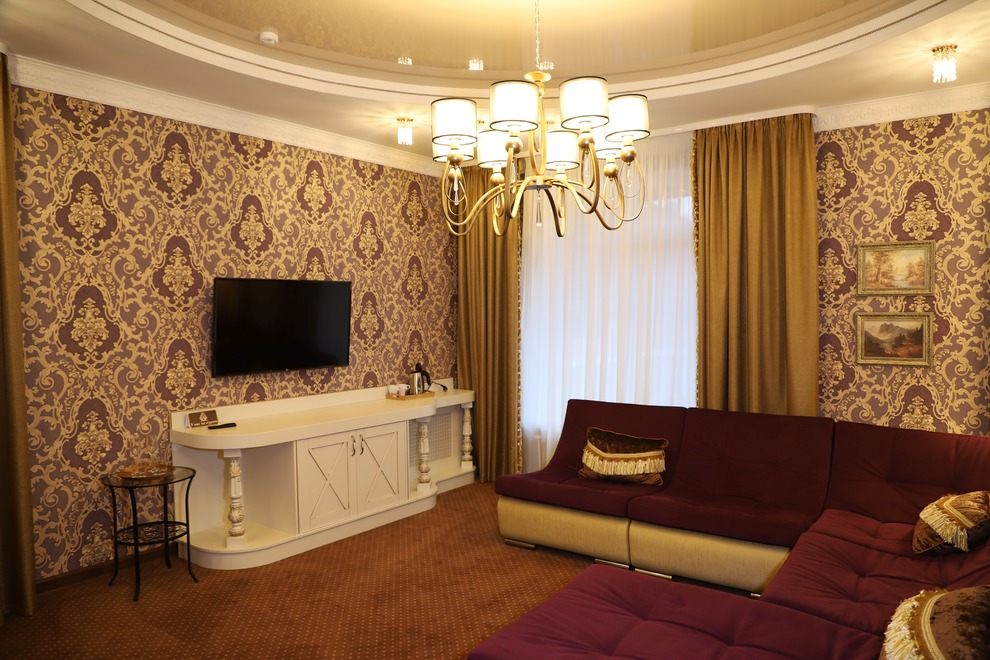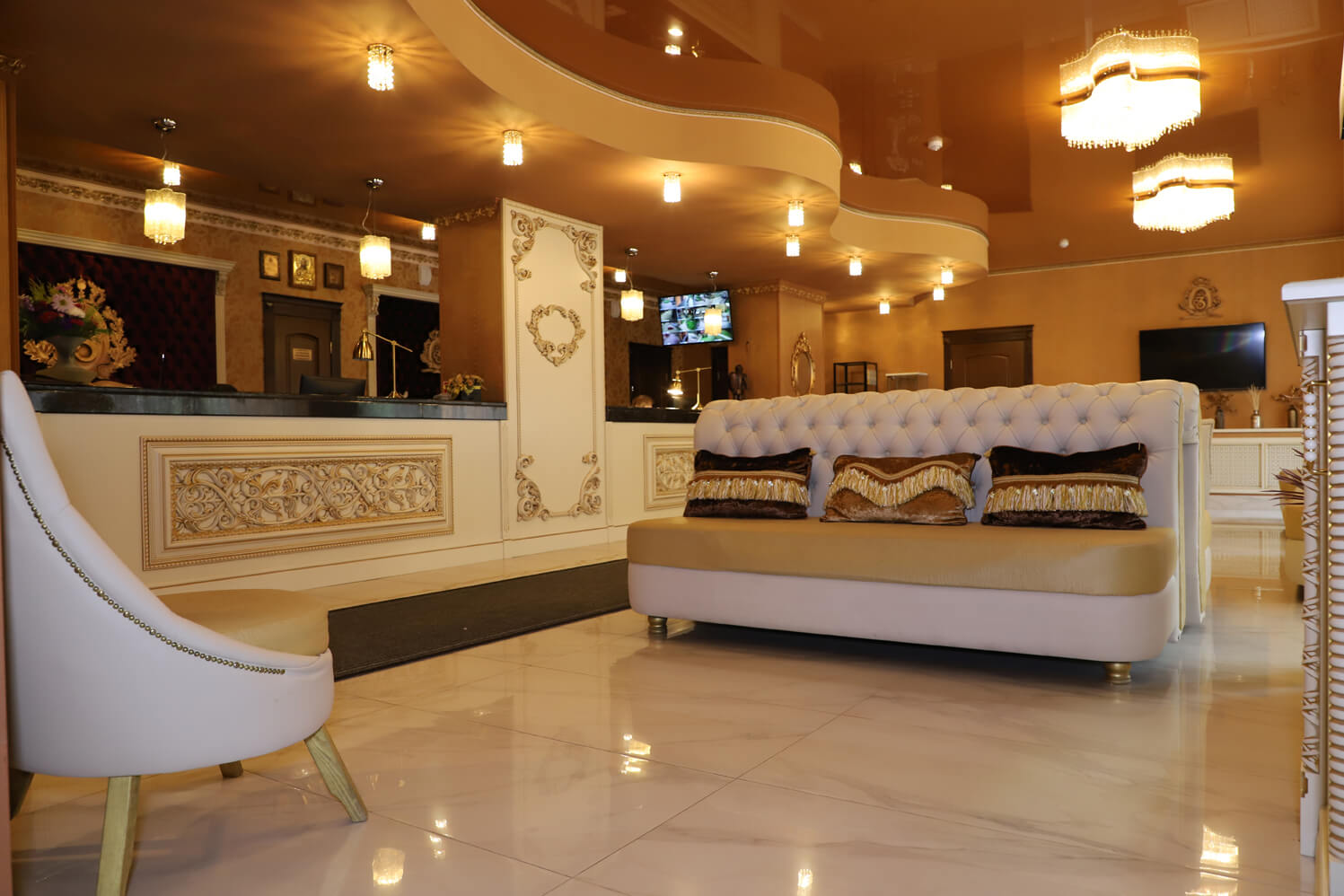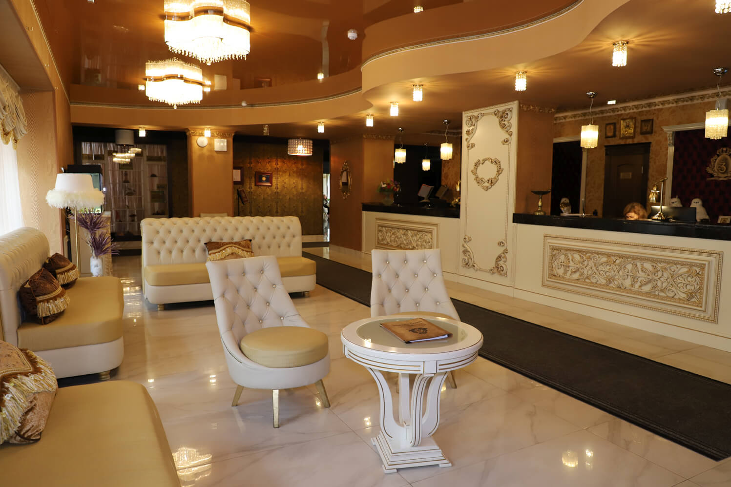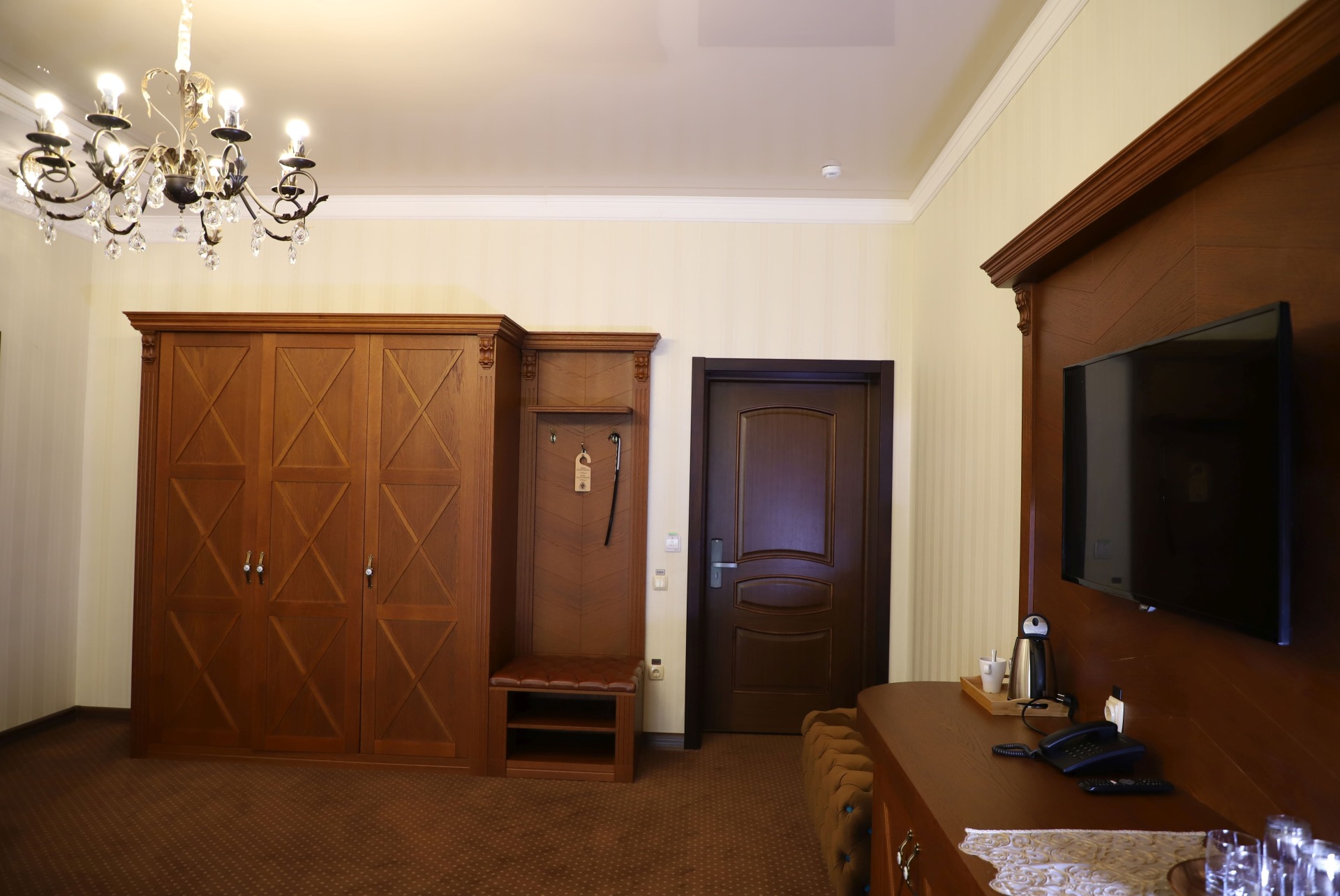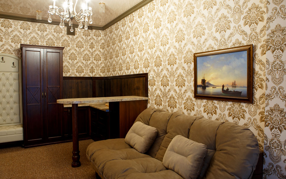 - 2-местный 2-комнатный номер Люкс. Площадь номера - 29 кв.м. В номере: спальня с двуспальной кроватью, гостиная с мягкой мебелью, телевизор, холодильник, сейф, санузел с душем, халаты.