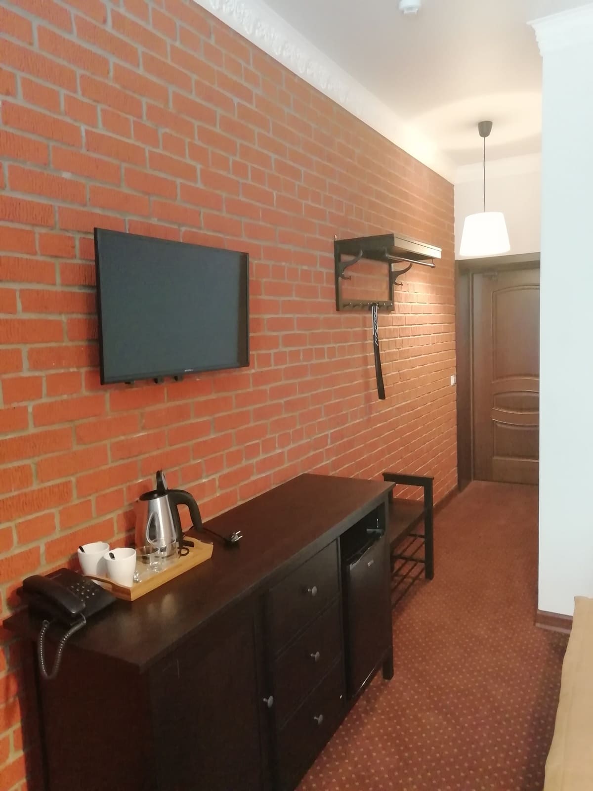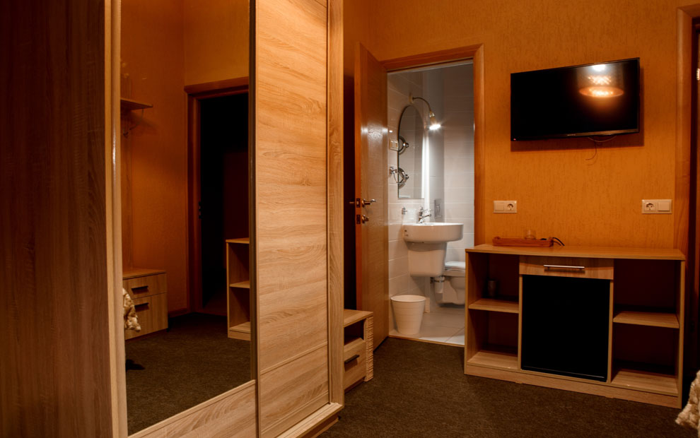 - 1-местный 1-комнатный номер Эконом. Площадь номера - 23 кв.м. В номере: полутороспальная кровать, телевизор, холодильник, санузел с душем.