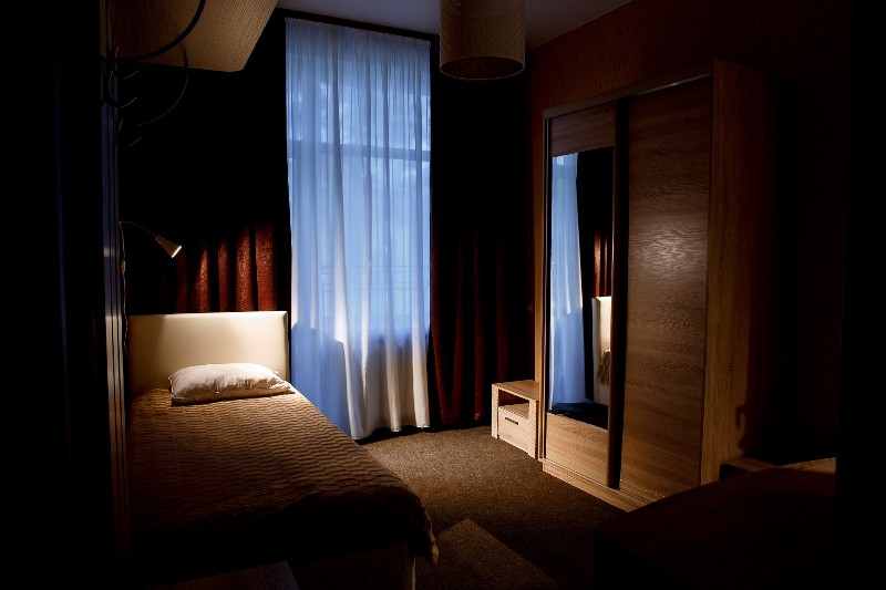 - 1-местный 1-комнатный номер Комфорт. Площадь номера - 20 кв.м. В номере: односпальная кровать, телевизор, холодильник, чайник, фен, душ, сейф, санузел с душем. Балкон/без балкона.