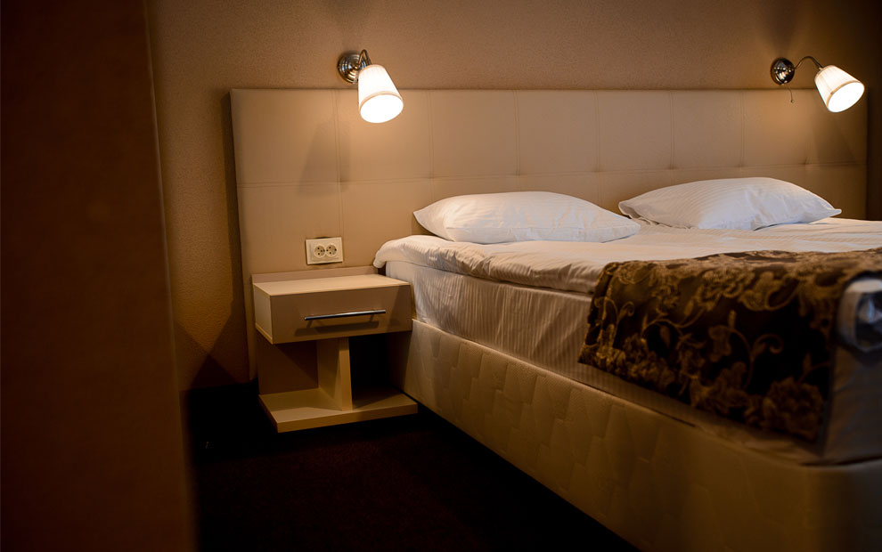 - 2-местный 1-комнатный номер Комфорт. Площадь номера - 20 кв.м В номере: две односпальные или двуспальная кровать, телевизор, холодильник, сейф, кондиционер, санузел с душем. Балкон/без балкона.