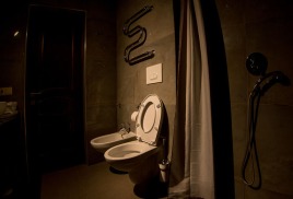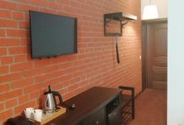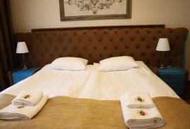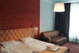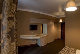 - 2-местный 1-комнатный номер Студия. Площадь номера - 29 кв.м. В номере: двуспальная кровать, мягкая мебель, телевизор, холодильник, сейф, санузел с душем, халаты.