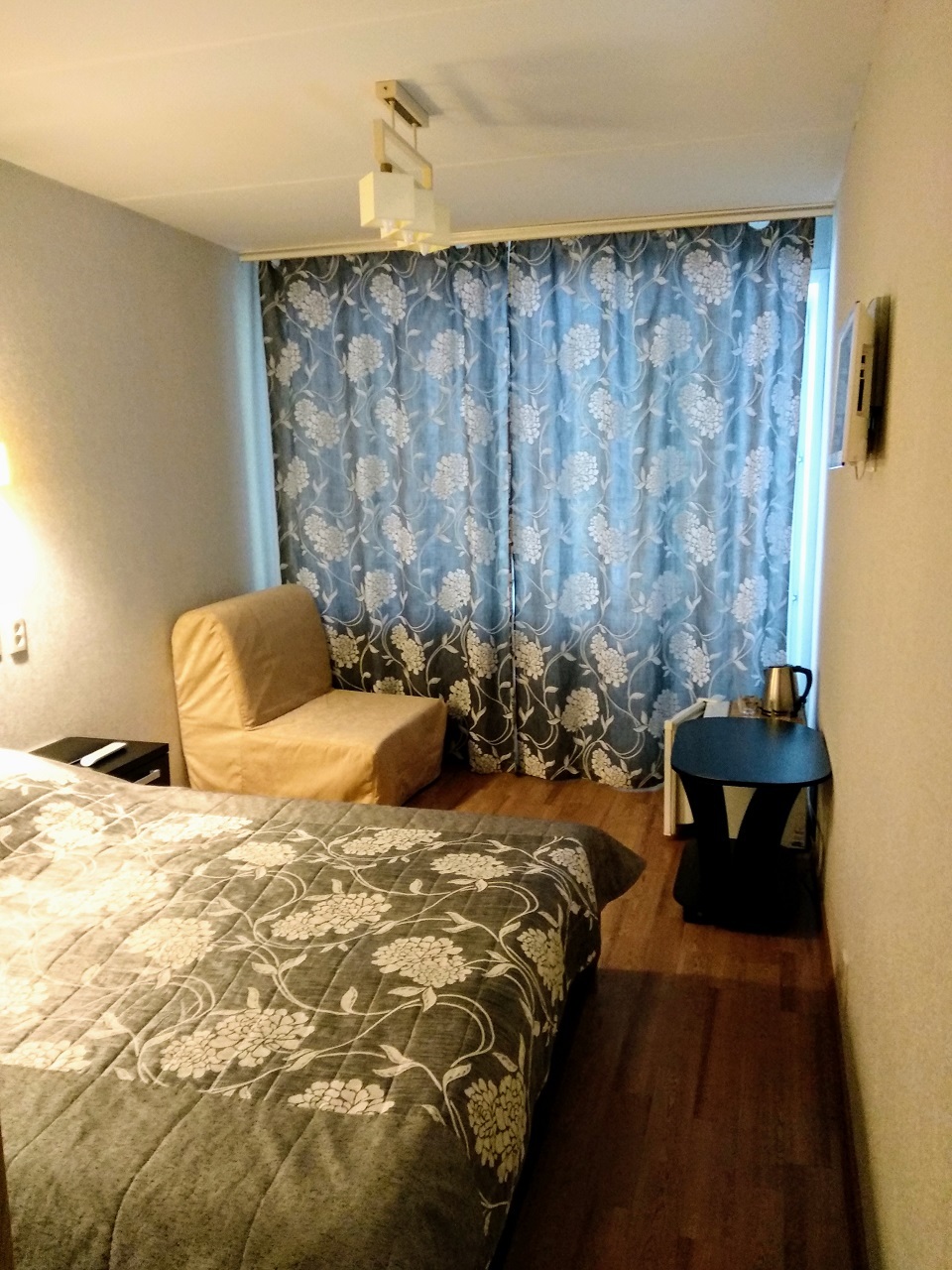 - 1-местный 1-комнатный Улучшенный. Площадь номера: 18 кв.м. В номере: двуспальная кровать, телевизор, холодильник, санузел с душем, банные полотенца, гигиенические средства, лоджия, чайник. (Ремонт в июне 2010 года).