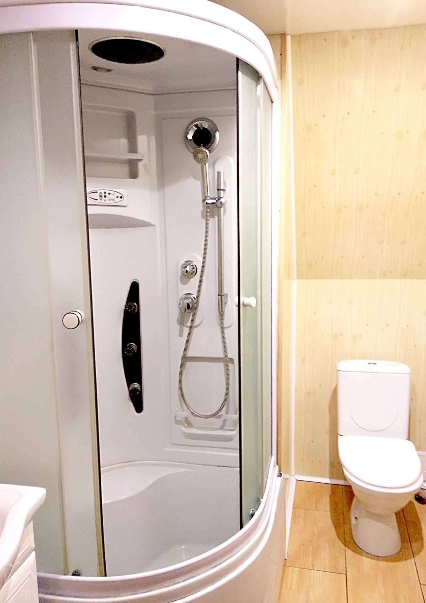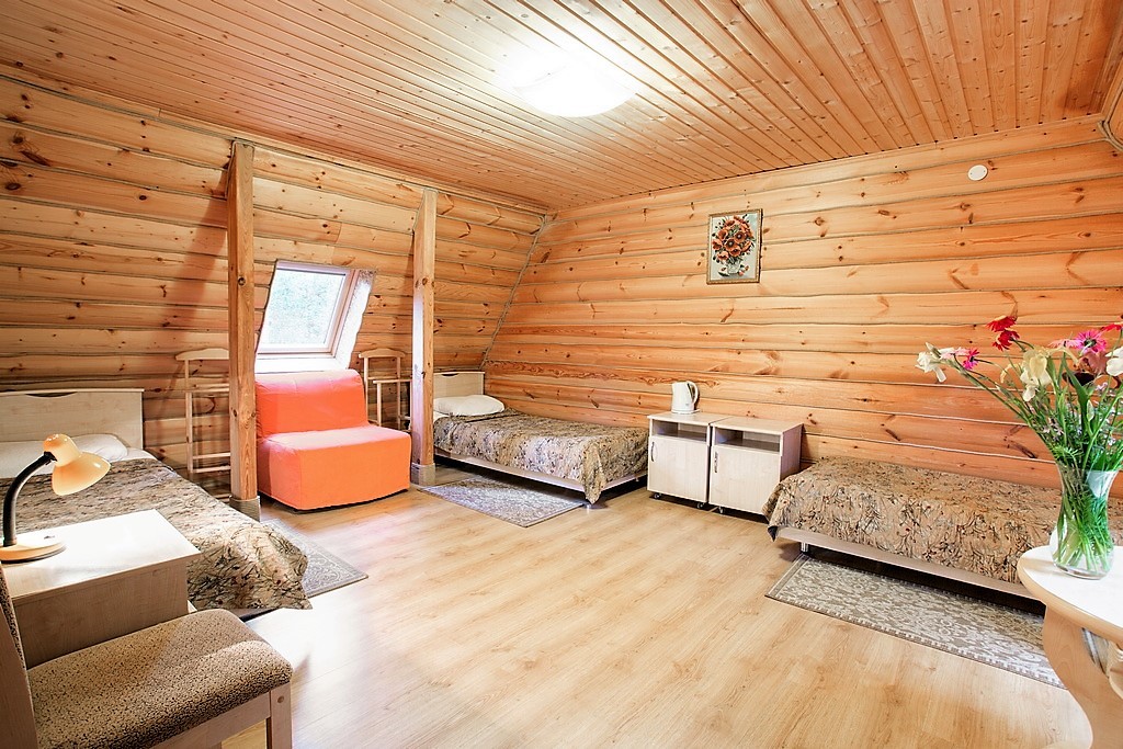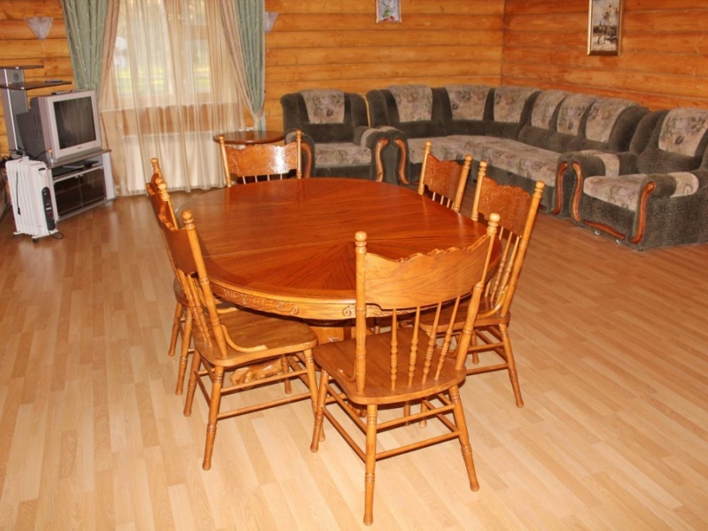 - 2 этаж: 2 спальни в каждой из которых двуспальная кровать, диван-американка, телевизор, санузел с душевой кабиной, полотенца, фен, гладильная доска, утюг.