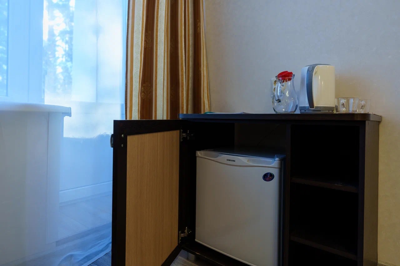 Гостиница эко-здравницы: 3-х этажный корпус без лифта, на первом этаже лечебные кабинеты. 50 метров до столовой. 100 метров до водолечебницы.