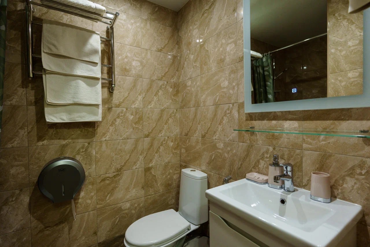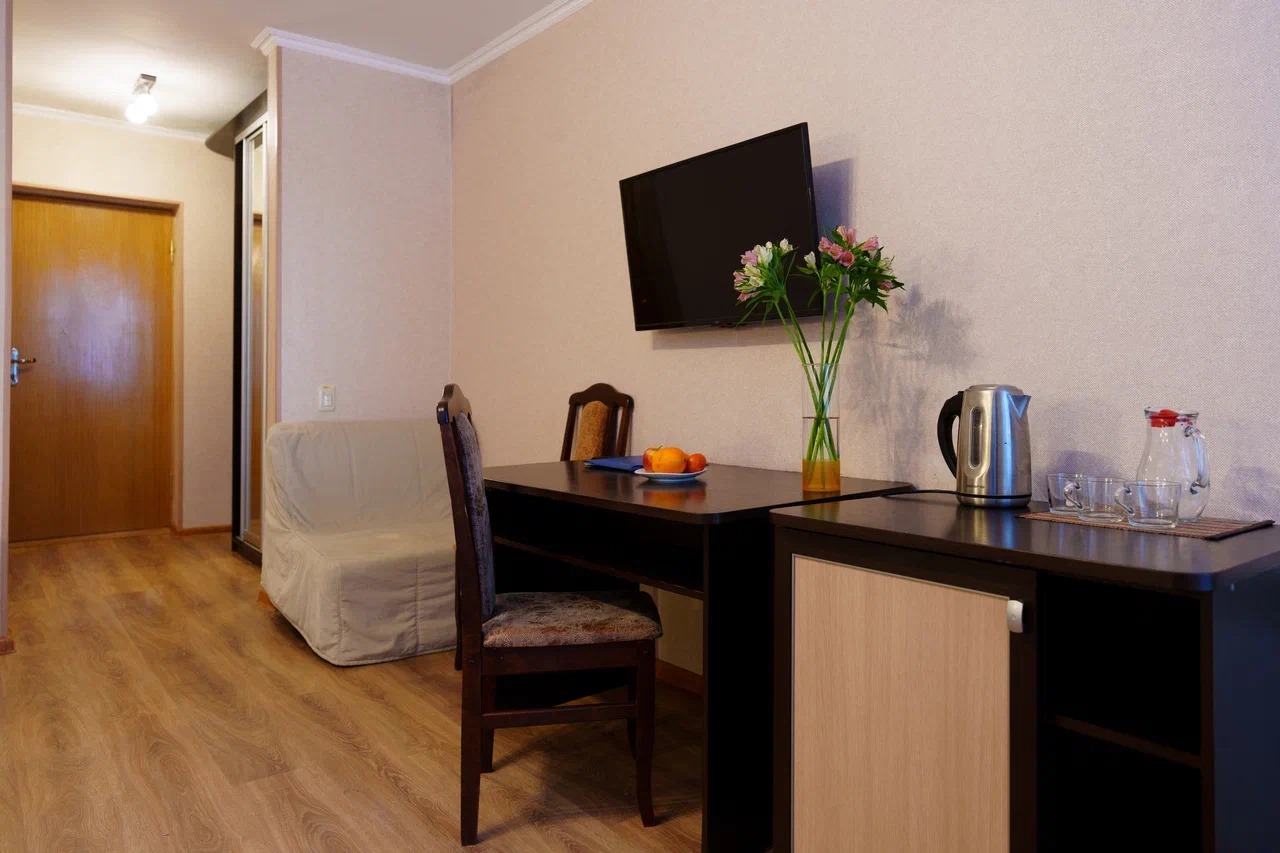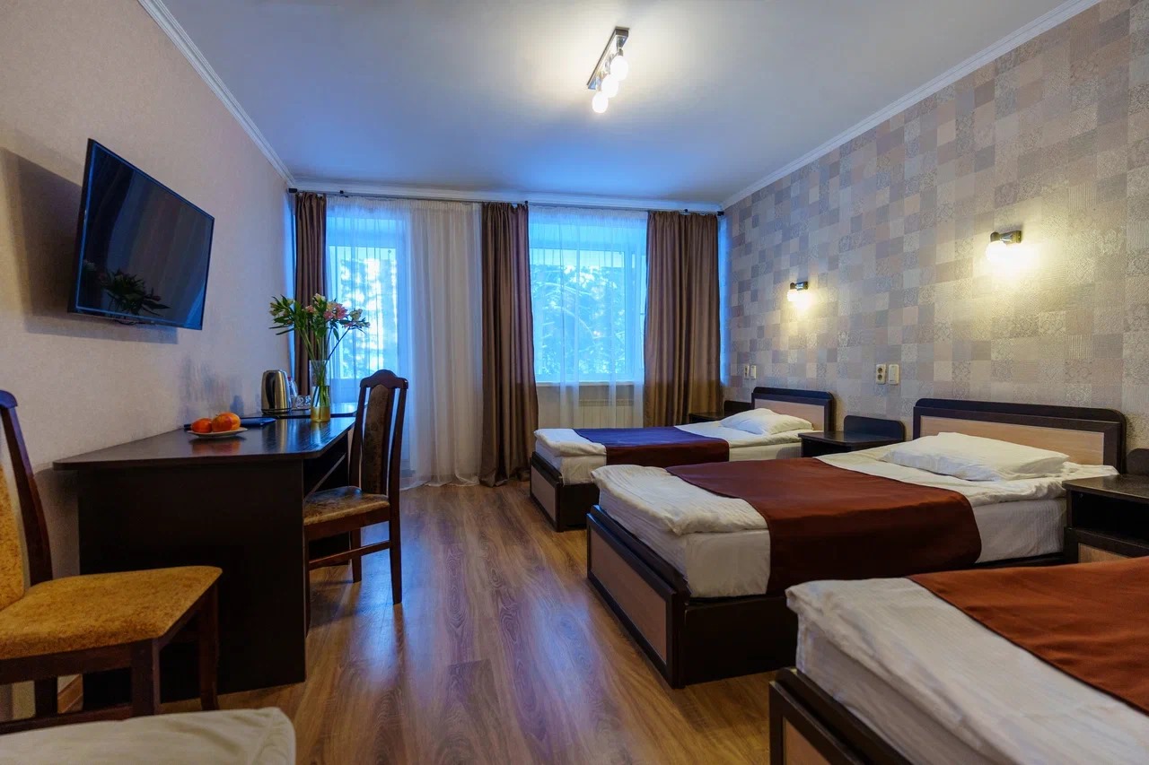 - 3-местный 1-комнатный номер Улучшенный стандарт плюс. Площадь номера: 32 кв.м. В номере: 2 односпальные кровати, кресло-кровать, ЖК-телевизор, спутниковое TV, холодильник, фен, санузел с душевой кабиной, банные полотенца, гигиенические средства, чайный набор, чайник, отдельный вход.