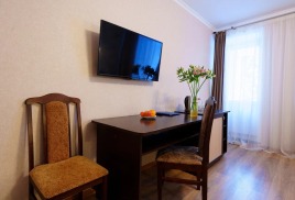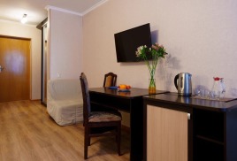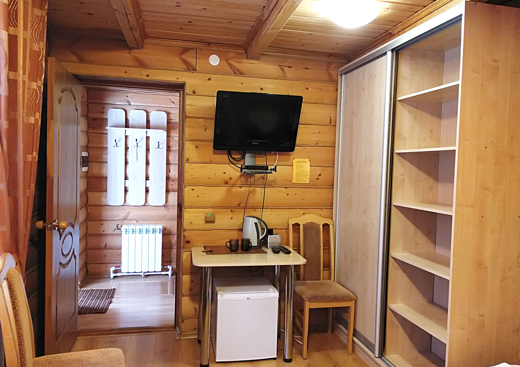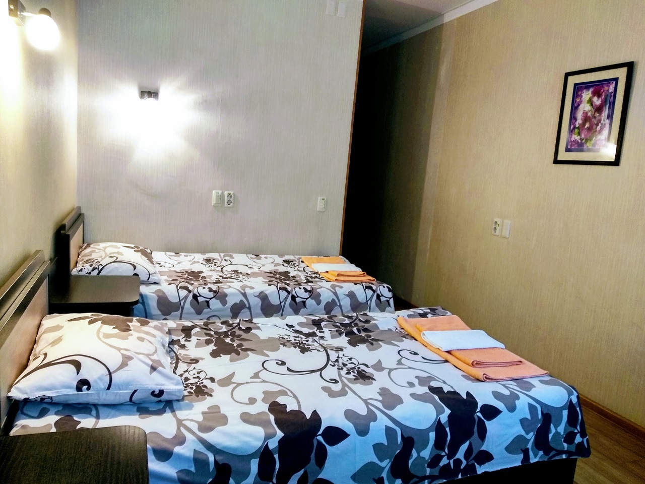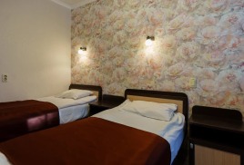- 1-местный, 2-местный 1-комнатный Улучшенный стандарт плюс. Площадь номера: 16 кв.м. В номере: две односпальные кровати,ЖК-телевизор, спутниковое TV, холодильник, фен, санузел с душевой кабиной, банные полотенца, гигиенические средства, чайный набор, чайник, отдельный вход.