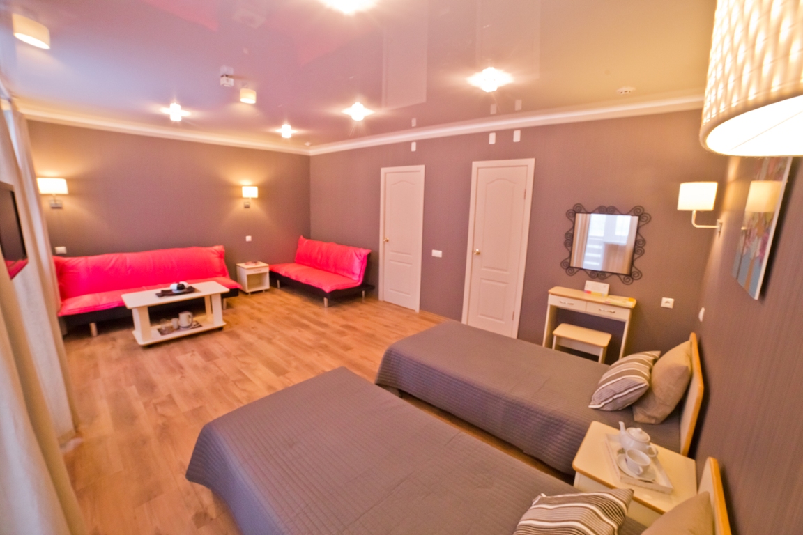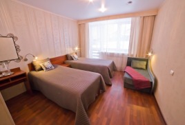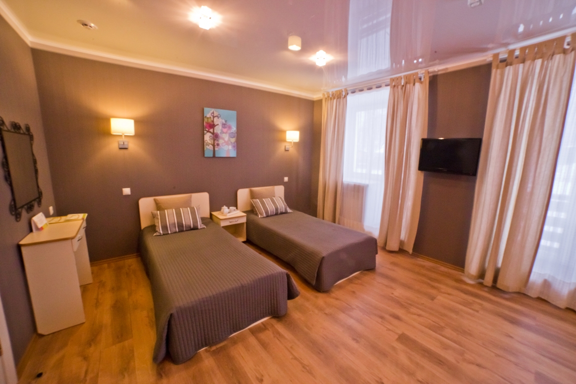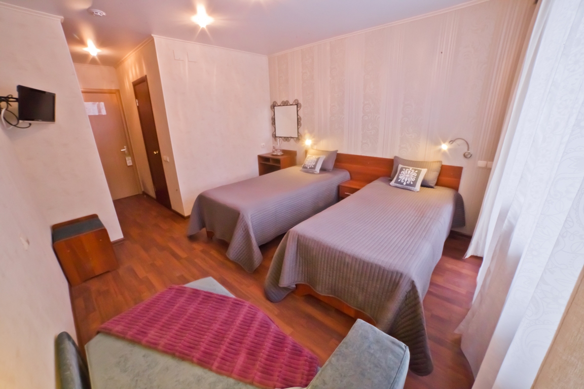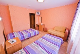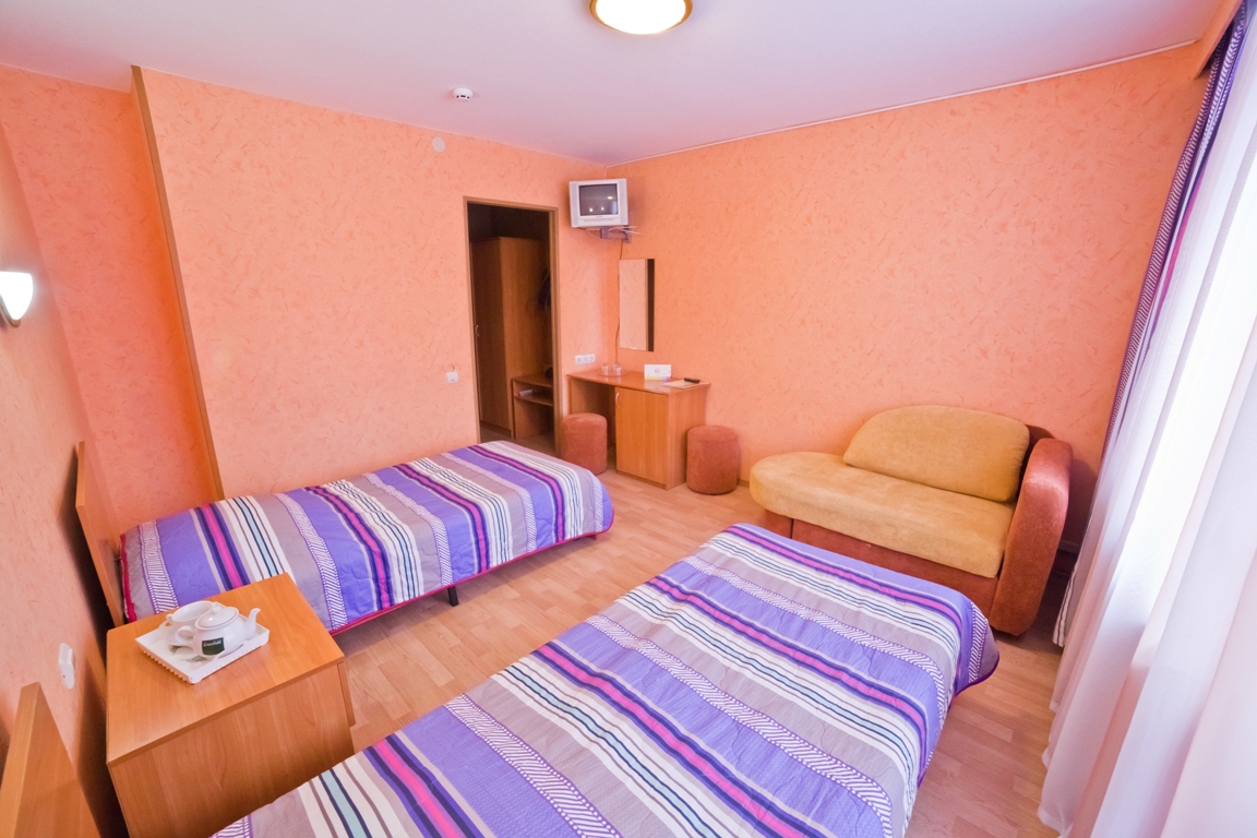 - 2-местный 1-комнатный номер Стандарт дабл плюс. 31 номер. Площадь 16 кв. м. В номере: две односпальные кровати, раскладной диван-кушетка, мини-бар, телевизор, санузел с ванной, балкон. Максимальная вместимость- 3 человека , дополнительное место - диван-кушетка.