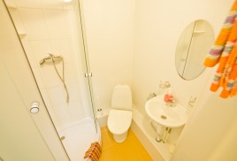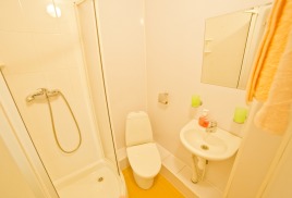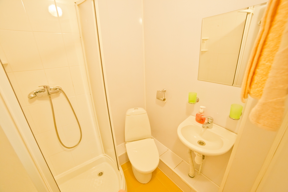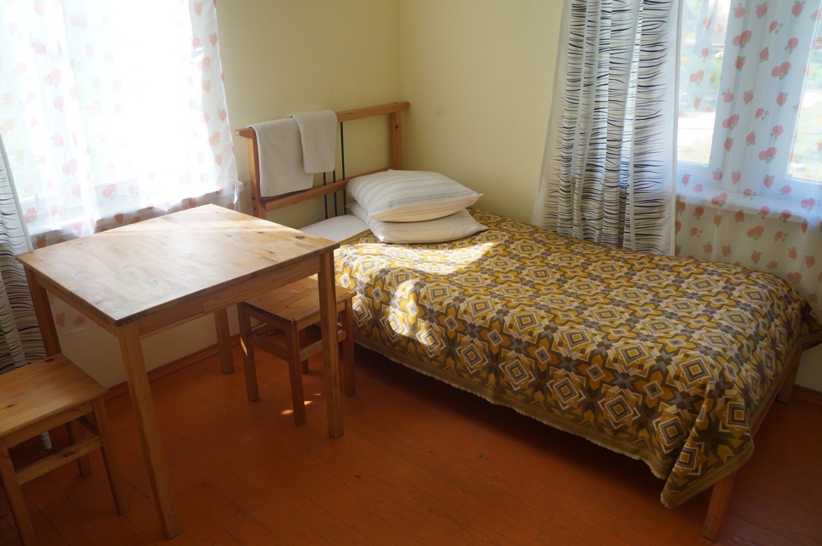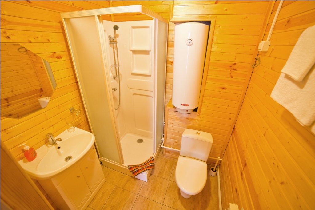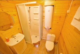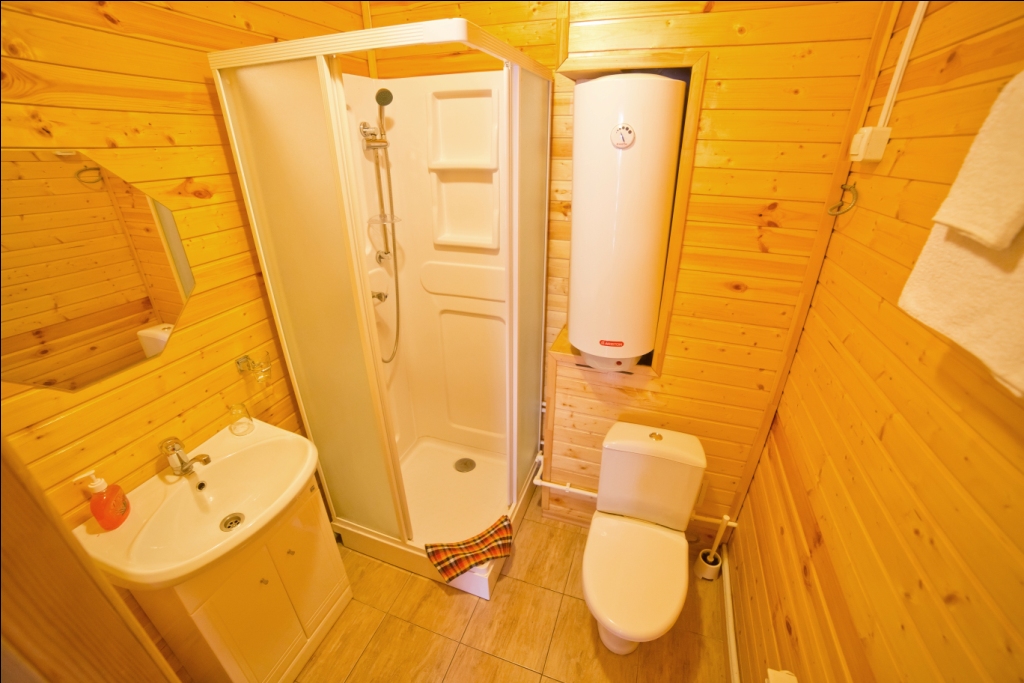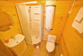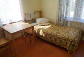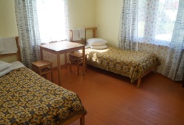 - В домике: 5 изолированных комнат площадью от 6 до 15 квадратных метров (Две 1-но местных комнаты, две 2-х местные комнаты, одна 3-х местная комната), общий санузел (душ, два туалета, горячая вода (бойлер)), веранда.