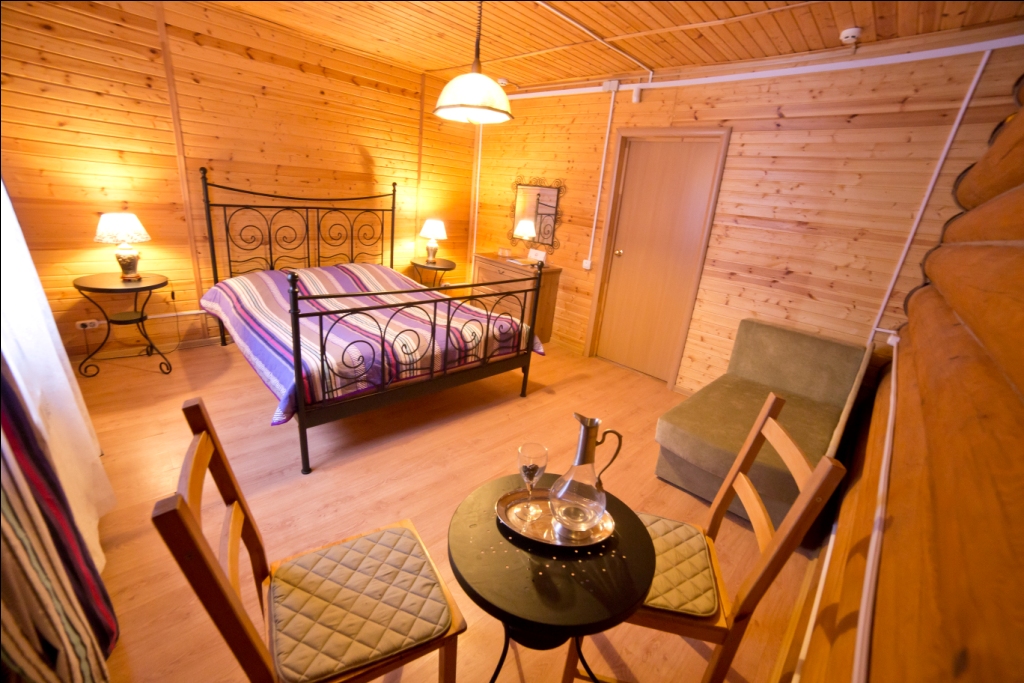 - 2-местный 1-комнатный номер Комфорт. 12 номеров, ррасположены на 1 этаже коттеджа. . В номере: двуспальная кровать, в некоторых номерах раскладной диванчик, телевизор, холодильник, электрический чайник, набор посуды, веранда, санузел с душевой кабиной. Максимальное размещение - 3 человека. Дополнительное место - раскладной диванчик или раскладушка.