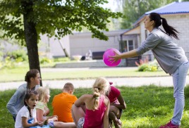 - волейбольная площадка с грунтовым покрытием, песчаная площадка для пляжного волейбола, площадка для игры в бадминтон, поле для мини – футбола, площадки для турниров и народных игр; зимой - открытый каток, ледяная горка;