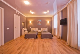 - 2-местный 1-комнатный номер Семейная студия. 2 номера на 1м этаже. Площадь 27,5 кв. м. В номере: две односпальные кровати, две кушетки, ЖК-телевизор, холодильник, санузел с душевой кабиной, балкон. Максимальная вместимость — 4 человека.