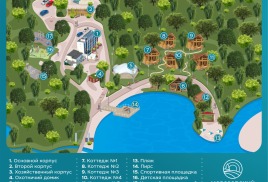Оздоровительный центр и обеденный зал находятся в основном корпусе. Проживание отдыхающих организовано в главном пятиэтажном корпусе с лифтом и на втором этаже второго корпуса. На территории расположен коттеджный поселок из пяти деревянных двухэтажных домов площадью 100 м². Во всех есть обеденная зона, две спальные комнаты, душ, туалет и гардеробная.