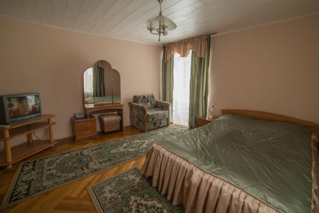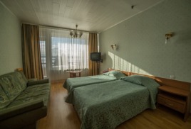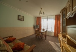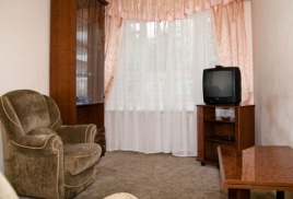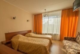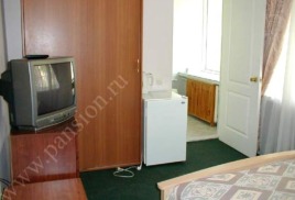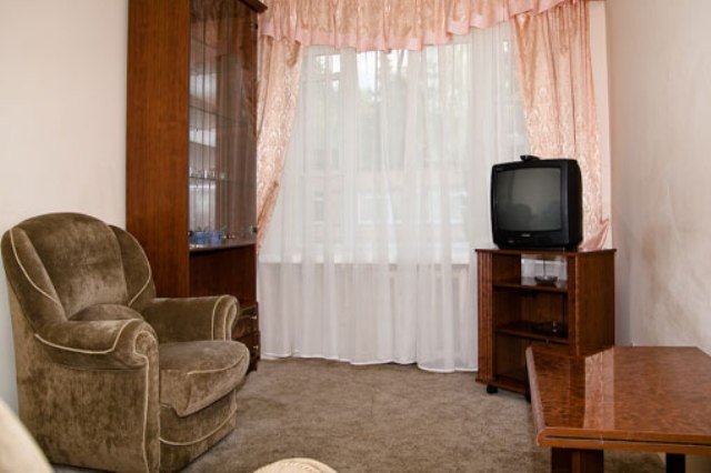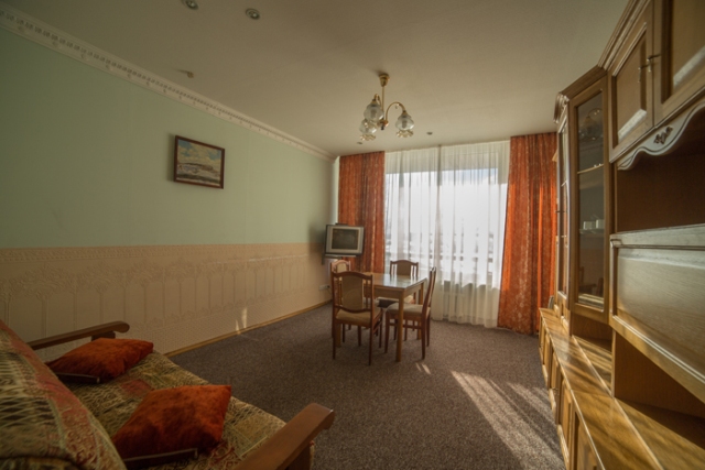 - Однокомнатный (классический). В номере: две кровати, диван-кровать раскладной, журнальный столик, телевизор, телефон, ванная комната (совмещенный санузел) с новой сантехникой, холодильник, лоджия.