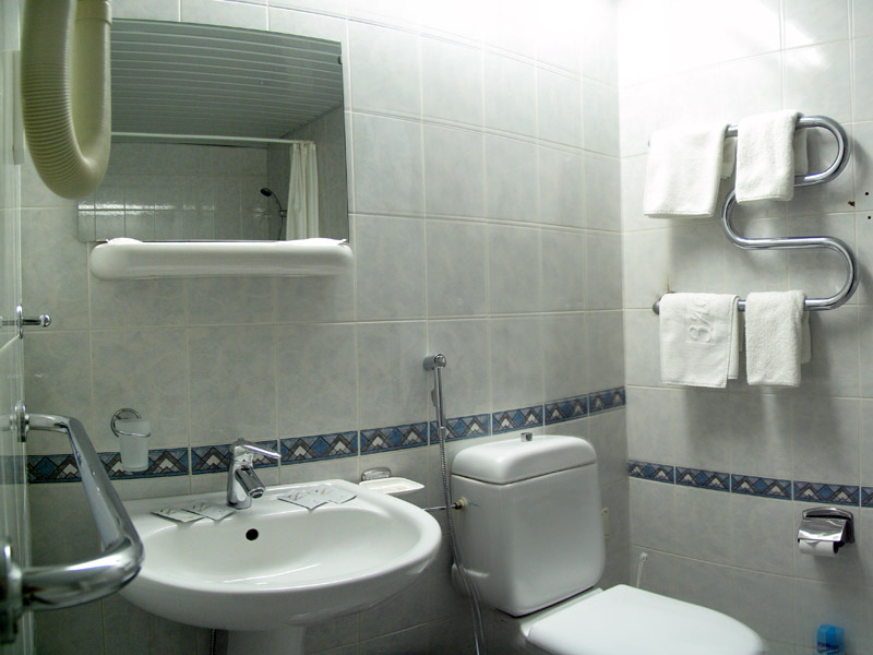 - Санузел: душевая кабина, умывальник, унитаз, фен, полотенце.