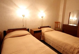 - 2-х местный 1-но комнатный стандарт. Площадь 20 кв.м В номере: две отдельные или одна двуспальная кровать, шкаф, стулья, холодильник, телевизор, санузел с душевой кабиной.