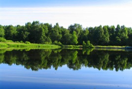 Водоем: небольшое водохранилище на реке Скалба, песчаный пляж, оборудован зонтиками.