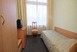 - 1-но местный 1-но комнатный стандарт. Площадь 10 кв.м. В номере: односпальная кровать, стулья, холодильник, телевизор, санузел с душевой кабиной.
