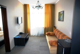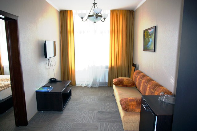 Категория номера зависит от площади, планировки, дизайна. В каждом номере есть ванная комната, фен, мини-бар холодильник, телевизор, кабельное ТВ, Wi-Fi. В номерах «СТУДИО» и «ДЕ ЛЮКС» предоставляются сейф, халаты и тапочки.