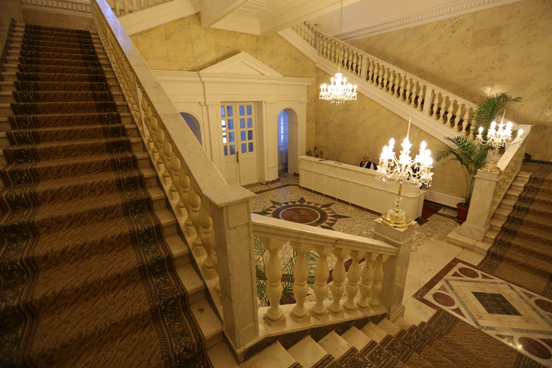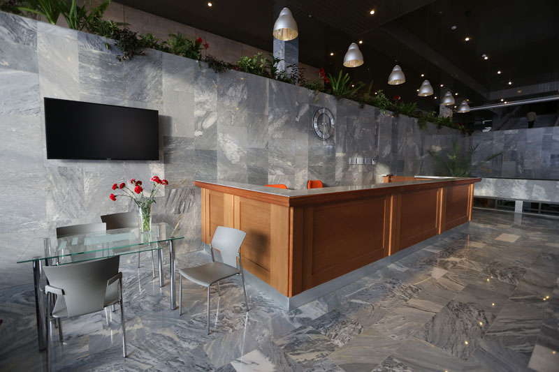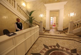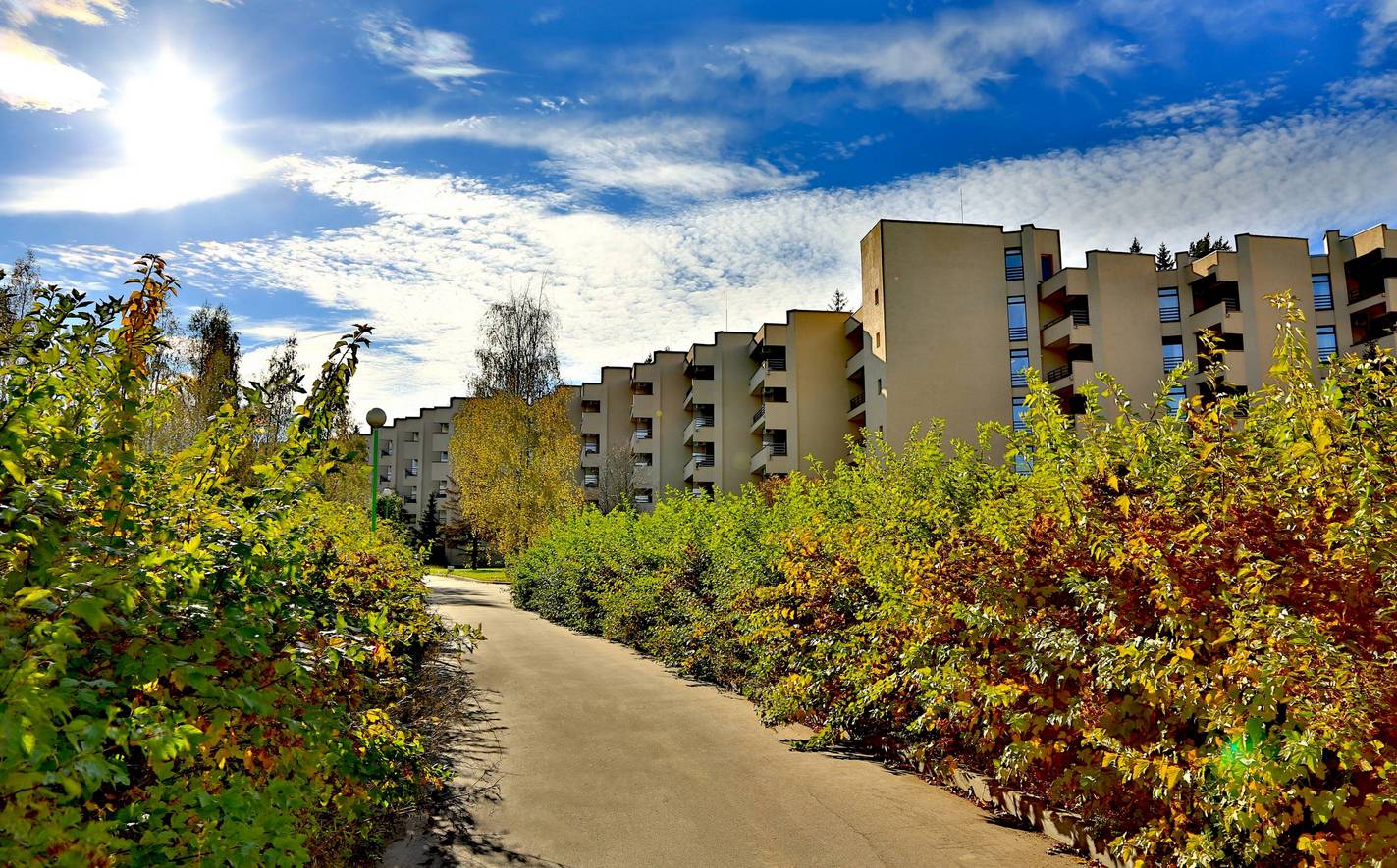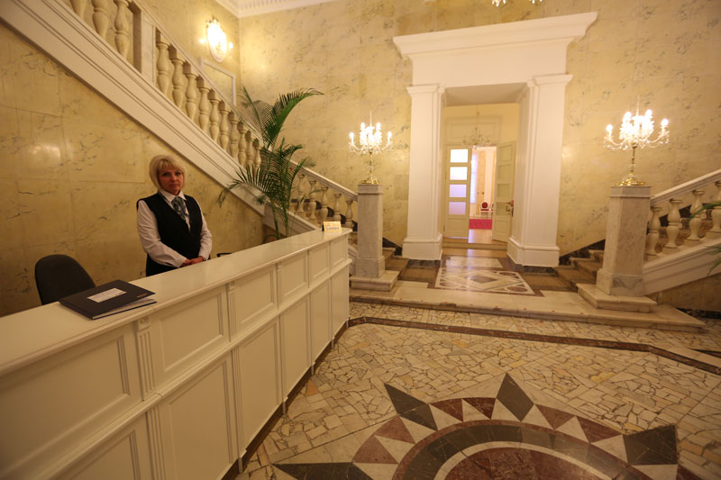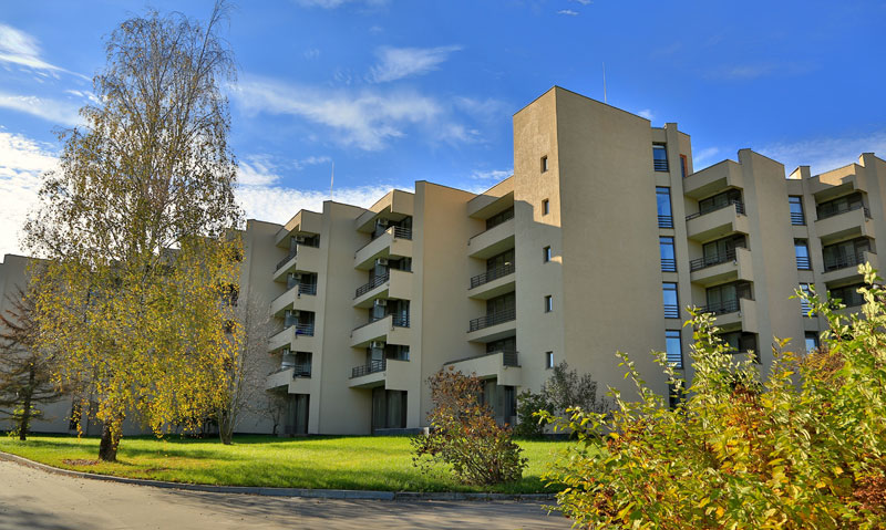 Корпус №1. 5-ти этажный спальный корпус с лифтом соединен теплым переходом со столовой, медицинским корпусом и бассейном. В корпусе располагается служба приема и размещения.