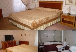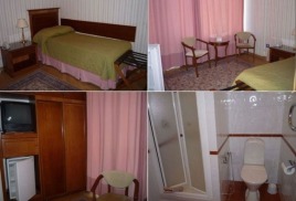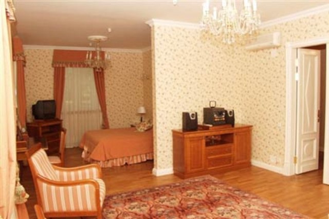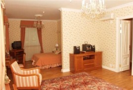 - 1-но местный 1-но комнатный люкс (доп. мест нет) – двуспальная кровать, телевизор, музыкальный центр, холодильник, электрочайник, посуда, санузел с ванной, банные принадлежности, кондиционер, телефон.