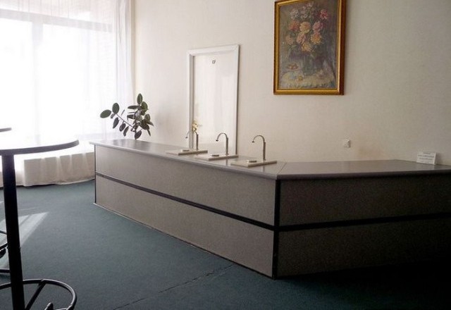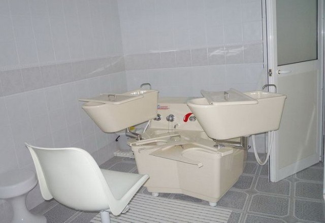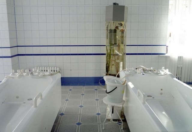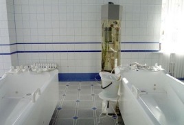 - 2-х местный 1-но комнатный Люкс №2 (40.4 кв.м), №3 (55.8 кв.м) - с видом в сторону фонтана на территорию санатория. 1 этаж. Состоит: прихожая, спальня, ванная комната (ванна), без балкона. В номере имеется: двуспальная кровать, телевизор-моноблок, музыкальный центр, холодильник, кондиционер, диван, шкаф-купе, платяной шкаф, телефон, беде (№3), фен, чайник, гладильная доска, утюг, полотенца (банные, махровые), халаты, косметическое зеркало, посуда, сейф, пресс для брюк.