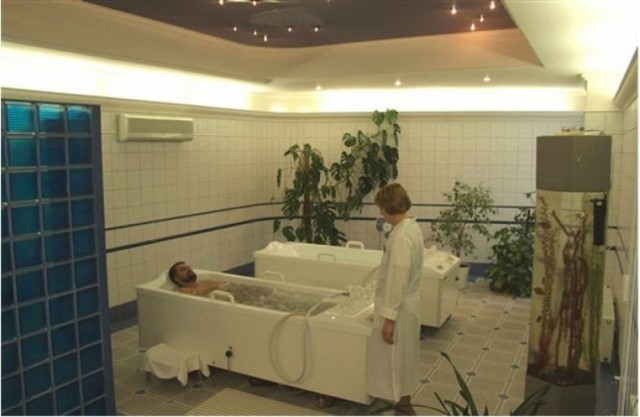 - 2-х местный 1-но комнатный Люкс №5 (42.5 кв.м), №6 (55.2 кв.м) - с видом в сторону фонтана на территорию санатория. 2 этаж. Состоит: прихожая, спальня, ванная комната (ванна, беде), без балкона. В номере имеется: двуспальная кровать, телевизор-моноблок, музыкальный центр, холодильник, кондиционер, диван, шкаф-купе, платяной шкаф, телефон, фен, чайник, гладильная доска, утюг, полотенца (банные, махровые), халаты, посуда, косметическое зеркало, сейф, пресс для брюк.