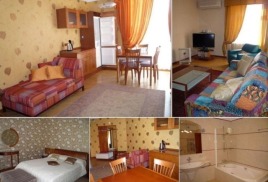 - «Апартаменты» 2-х комнатные 2-х местные – двуспальная кровать, диван раскладной, обеденный стол, два кресла, два телевизора, музыкальный центр, холодильник, СВЧ-печь, электрочайник, посуда, санузел, банные принадлежности, два кондиционера, телефон.