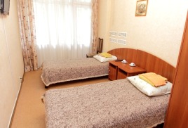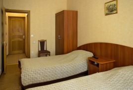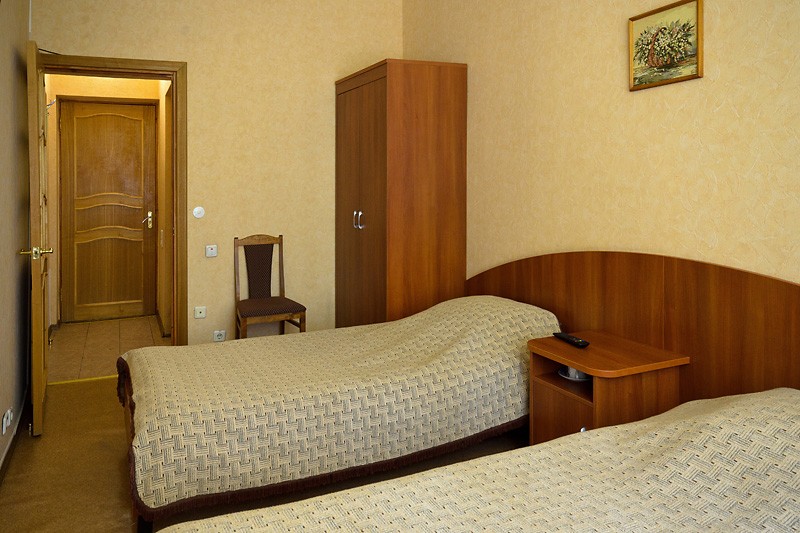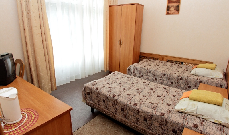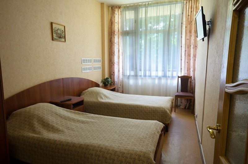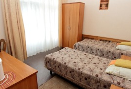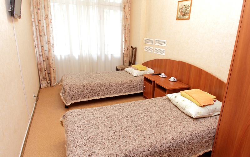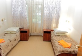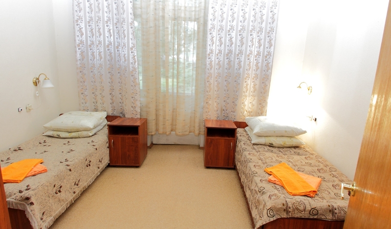 - 2-х местный 1-но комнатный номер Комфорт. В номере: две односпальные кровати, телевизор, холодильник, кондиционер, душ, туалет, умывальник.