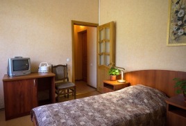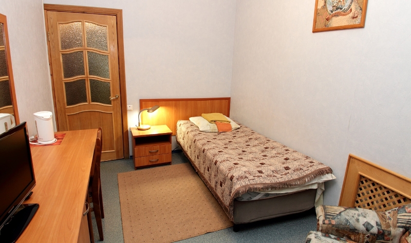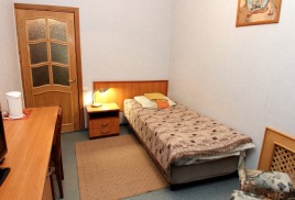 - 1-но местный 1-но комнатный номер Стандарт. В номере: односпальная кровать, телевизор, холодильник, душ, туалет, умывальник.