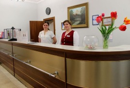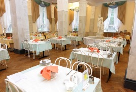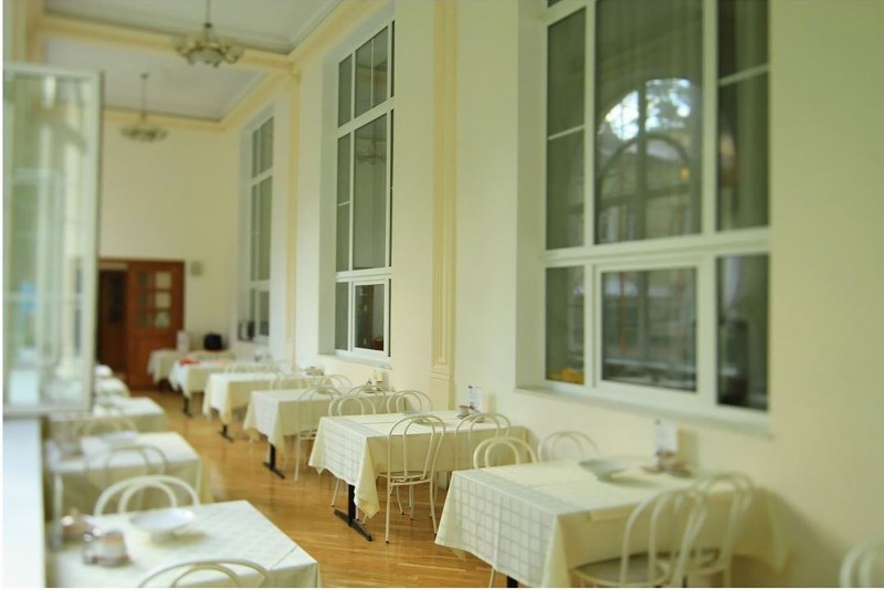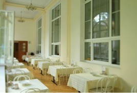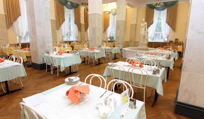 Размещение: Два 3-х этажных спальных корпуса, соеденены в единый комплекс с лечебным корпусом теплыми переходами. Главный корпус №2 без лифта, корпус №3 с лифтом.