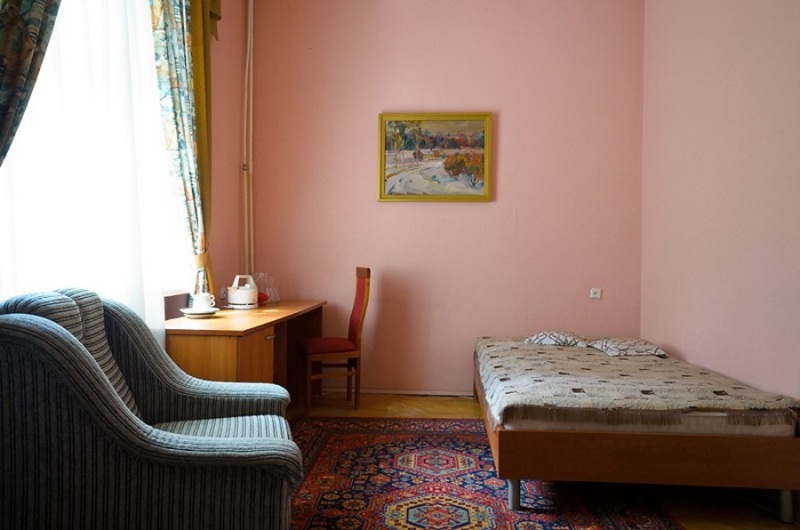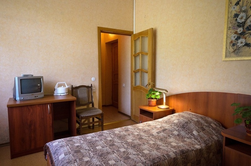 - 1-но местный 1-но комнатный номер Комфорт. В номере: односпальная кровать, телевизор, холодильник, ванна, туалет, умывальник, балкон.