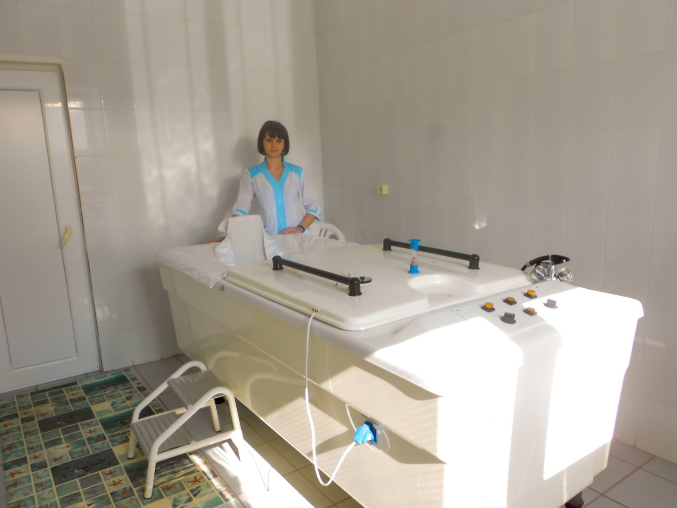 лечебные ванны (йодо-бромные, ароматические, скипидарные, с морской солью), ванны подводного массажа, сухие углекислые ванны, вихревые ванны для конечностей и лечения -заболеваний органов малого таза