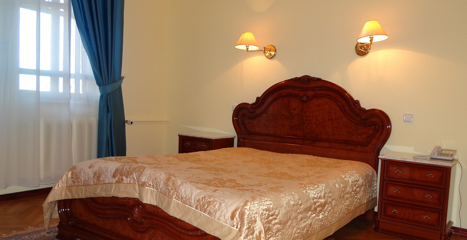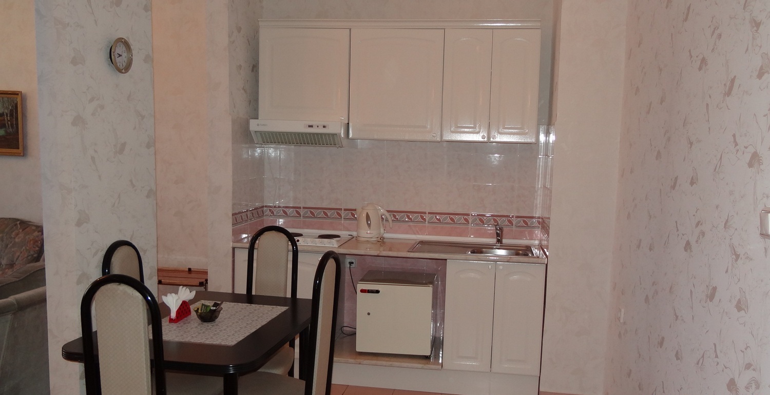 апартаменты (6 шт.) Две комнаты (гостиная и спальня), мини-кухня с электроплитой, две лоджии, холодильник, телевизор, телефон. В туалетной комнате большая ванна с душем, биде, фен.