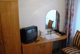 двухместный номер (26 шт.) Холодильник, телевизор, телефон. В туалетной комнате большая ванна с душем, биде, фен.