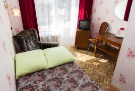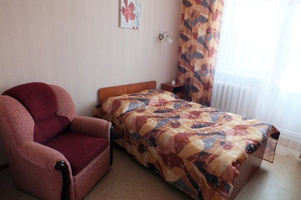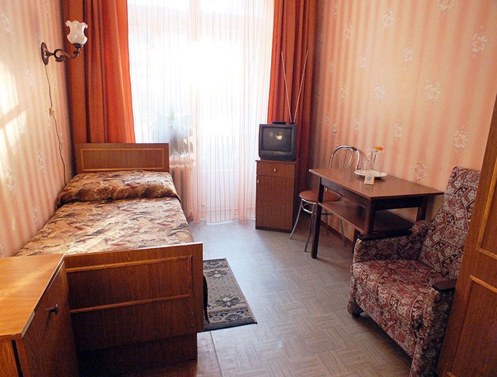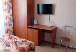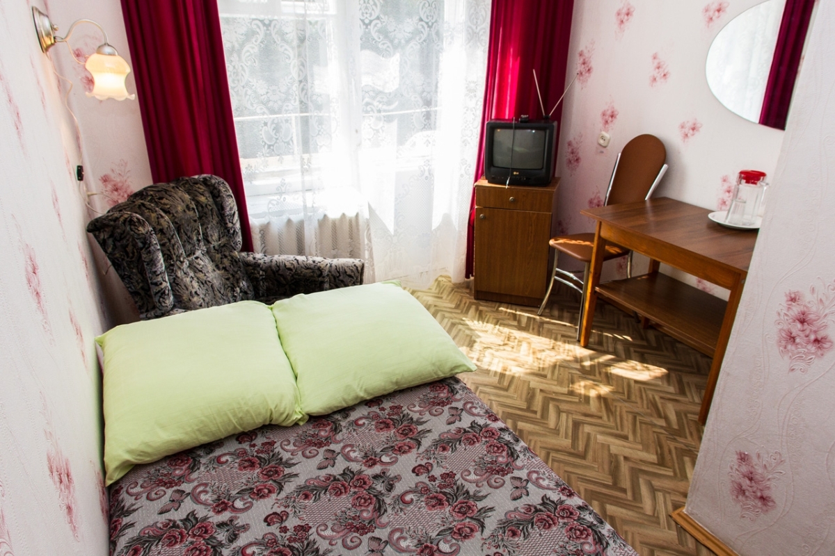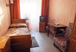- 1-местный 1-комнатный номер. В номере: односпальная кровать, телевизор, душ, туалет, умывальник. Холодильника нет.