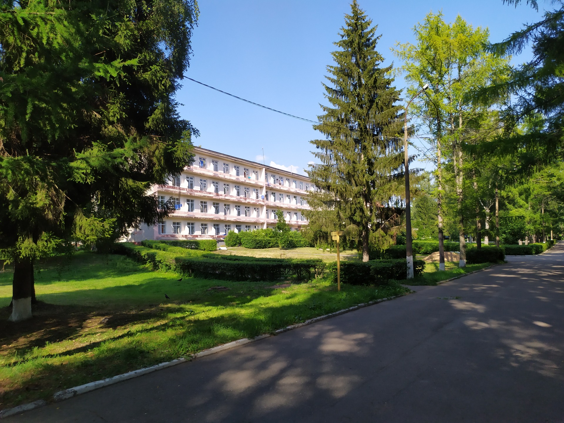 Основной корпус №6. 4-х этажный корпус без лифта. Соединен теплым переходом со столовой. 200 м от лечебного корпуса и грязелечебницы.