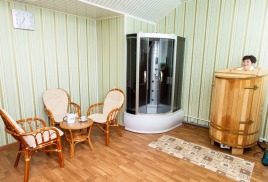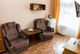 - 1-местный 2-комнатный номер. спальня с двумя односпальными кроватями или двуспальной кроватью, гостиная с мягкой мебелью, телевизор, холодильник, душ, туалет, умывальник.