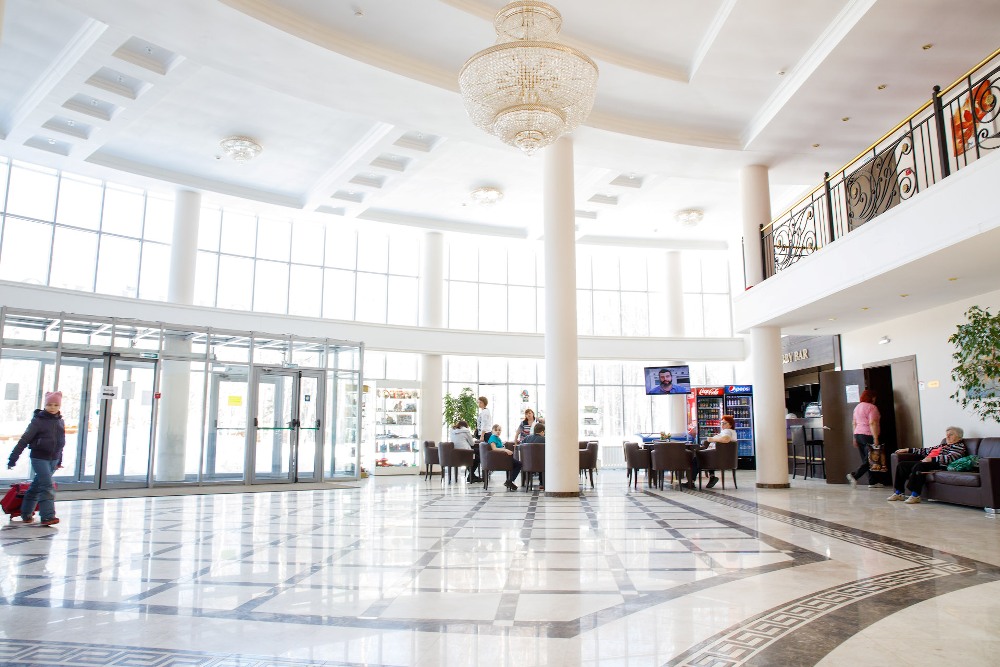 Основной корпус: 5-ти этажный корпус с лифтом, соединен теплым переходом с основным корпусом, бассейном, столовой и лечебным отделением. В холлах кулер с горячей/холодной водой.