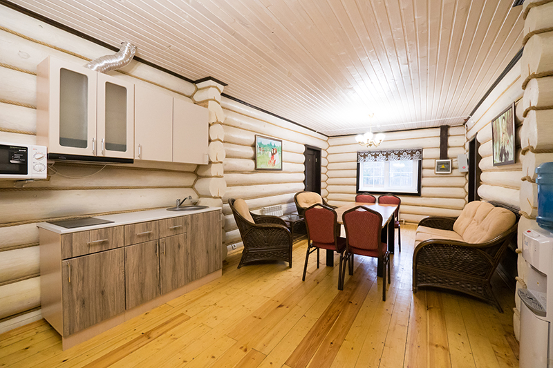 Коттедж "Финский": 3 коттеджа. В каждом коттедже четыре 2-х местных номера, общая гостинная с мягкой мебелью на 2 или 4 номера. В холлах кулер с горячей/холодной водой.