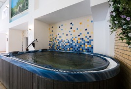 СПА-корпус - 6-ти этажный с лифтом, соединен теплым переходом сто столовой и лечебный корпусом. На цокольном этаже расположен СПА-комплекс с крытым бассейном и термами. На 1 этаже лечебные кабинеты. Номера с 2 по 6 этаж.