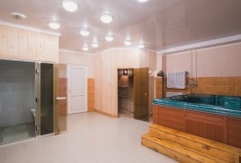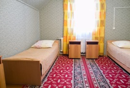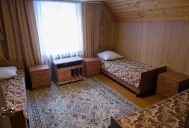 Домики на 7-8 человек со всеми удобствами. На 1 этаже: кухня (плита, холодильник, чайник, весь набор посуды), гостиная с мягкой мебелью, телевизором и сервантом, спальная комната с 2 кроватями, летняя комната отдыха, санузел с душевой кабиной. На 2 этаже: 2 спальни, в каждой спальне 3 кровати.