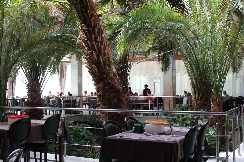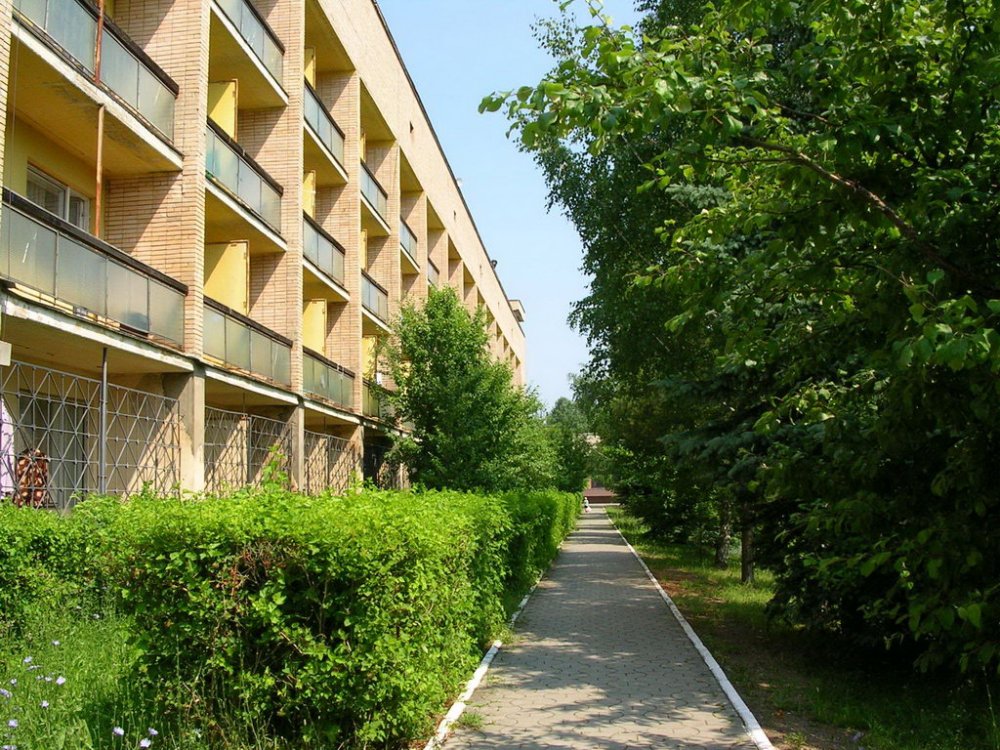 Размещение: 4-х этажный кирпичный главный корпус с лифтом (на 1-ом этаже столовая и лечебные кабинеты) и отдельно стоящее здание лечебно-оздоровительного комплекса (бассейн, водолечебница, отделение массажа (5 кабинетов) и зал ЛФК).