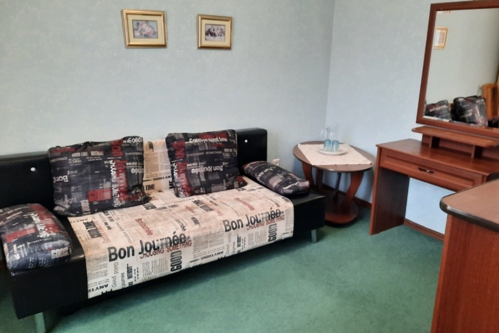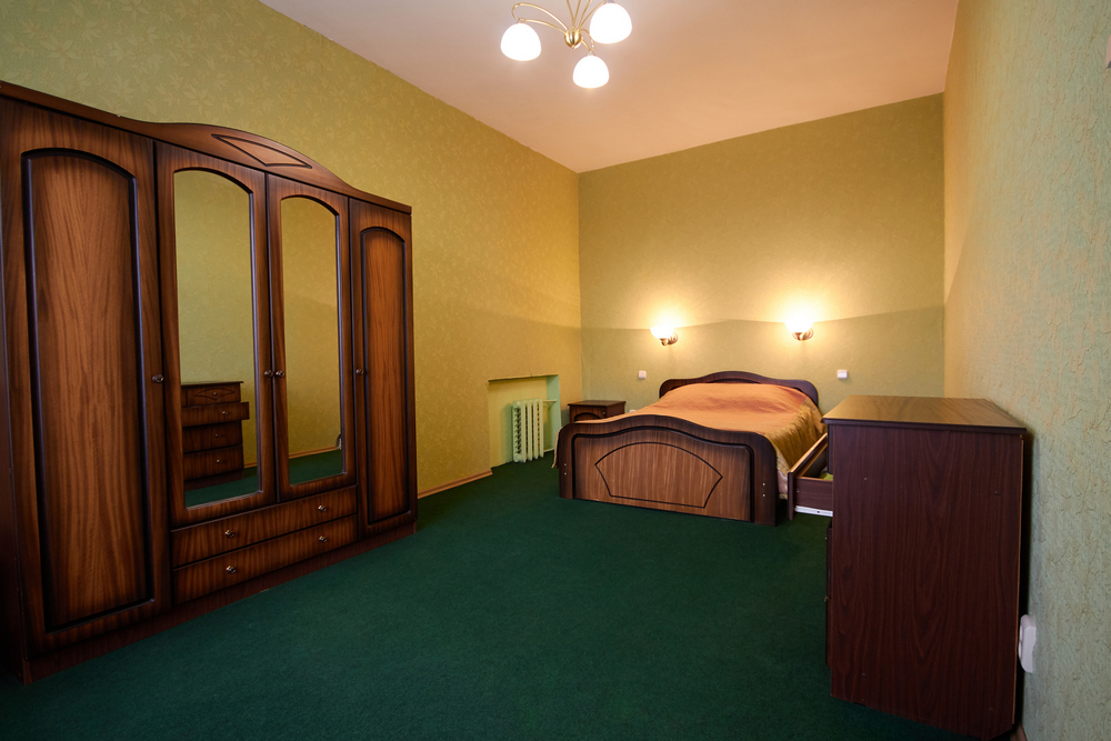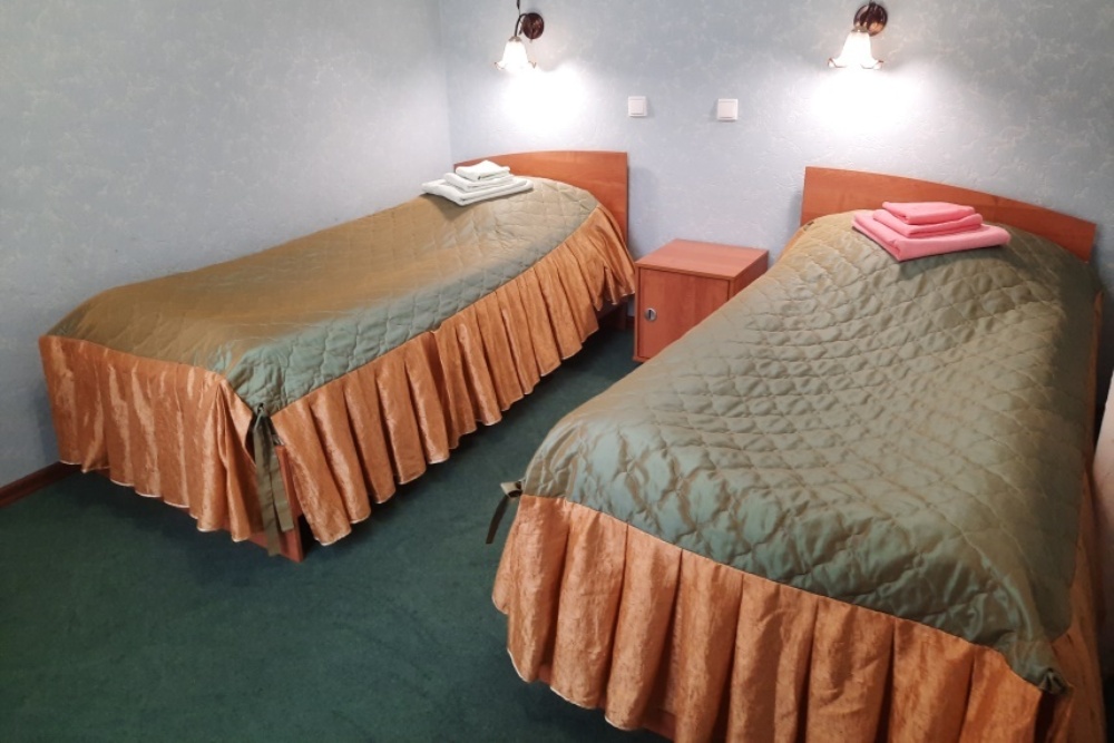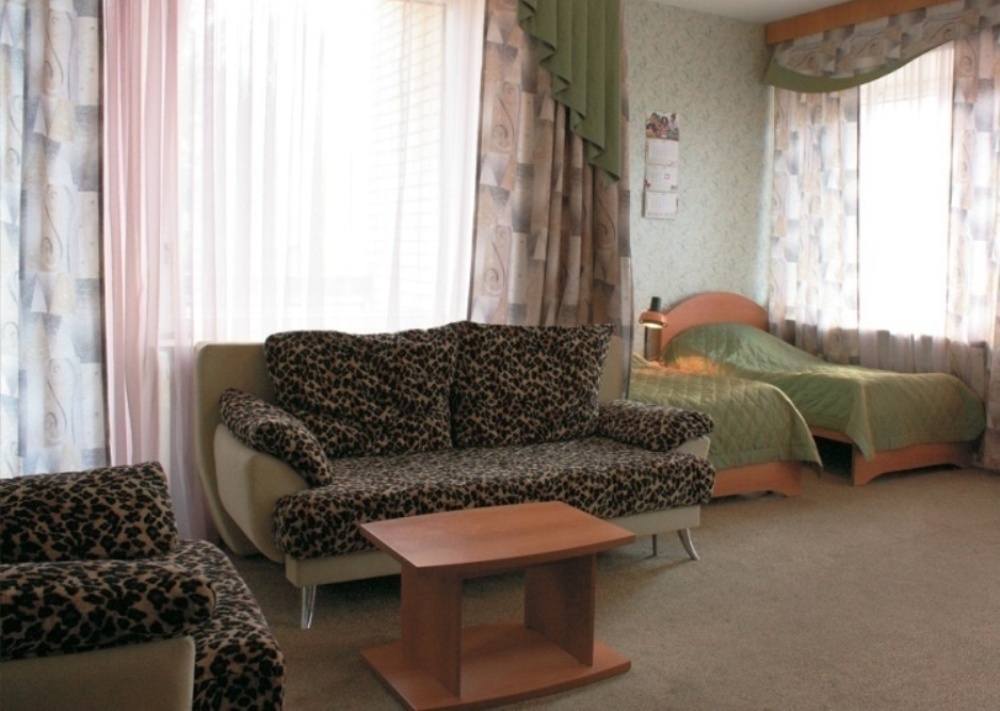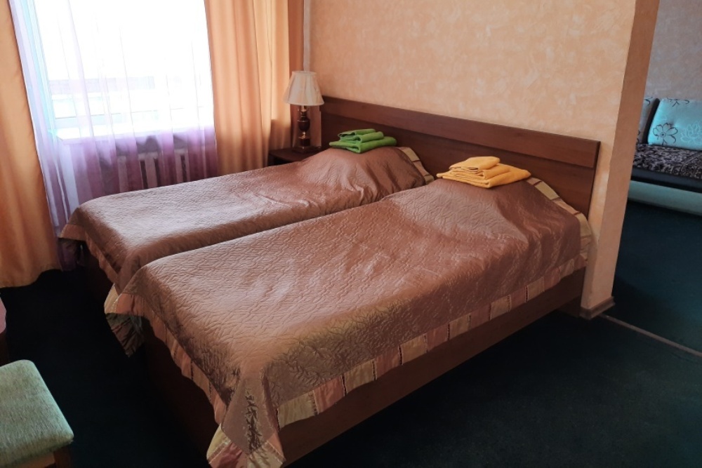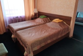 - 2-местный 2-комнатный Стандарт-2. В номере: спальня с двумя односпальными кроватями, гостиная с диваном, телевизор, холодильник, санузел с ванной. Дополнительное место - диван.