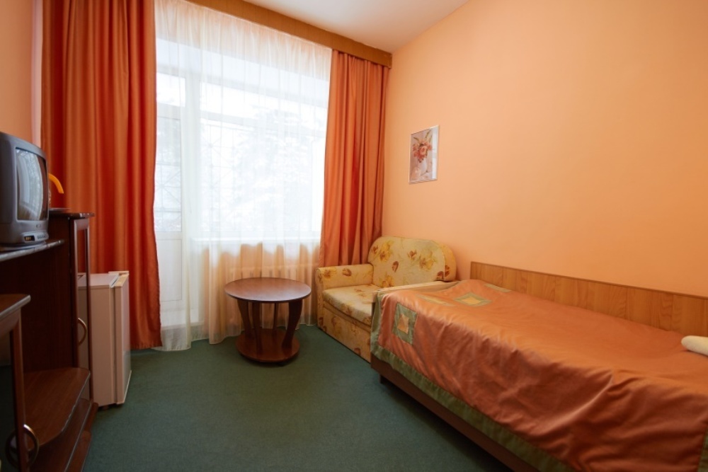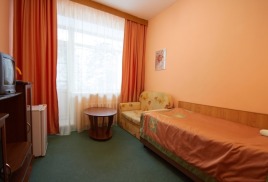 - 1-местный 1-комнатный Уют. В номере: односпальная кровать, телевизор, холодильник, санузел с душем, балкон. Дополнительное место - диван (кроме комнат №120, 211, 310, 419).