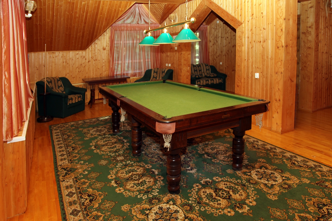 - две финские сауны: Первая - двухэтажный бальнеологический корпус, оборудован парной с электрической печью, душевой комнатой, раздевалкой; в комнате отдыха комфортная обстановка: мягкая мебель, телевизор, музыкальный центр; на кухне – электропечь, посуда; на втором этаже спальная комната, бильярд. Вторая баня-сауна расположена среди деревьев, в укромном тихом месте около пруда; оборудована парной с электрической печью, душевой комнатой, раздевалкой; в комнате отдыха – магнитофон, набор чайной посуды.