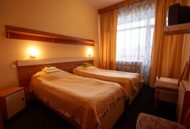- 2-местный 1-комнатный Комфорт. В номере: две односпальные (комнаты №125,225,325) или двуспальная кровать (комната №425), телевизор, холодильник, санузел с ванной, два балкона. Дополнительное место - диван.