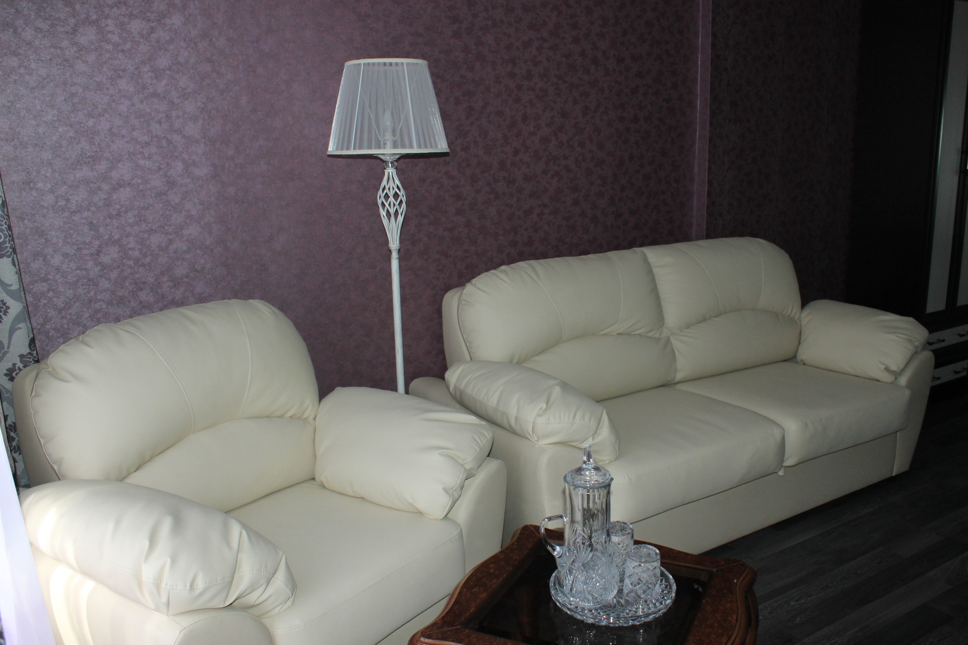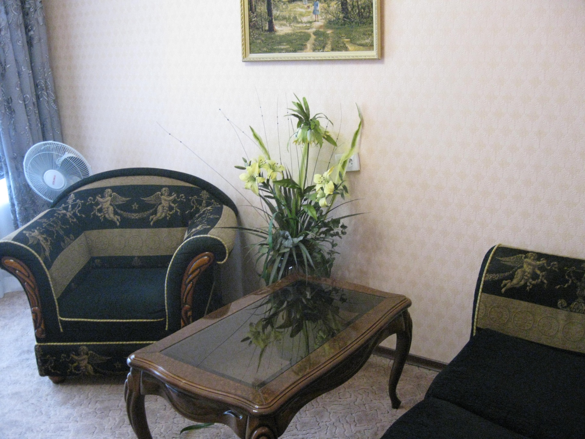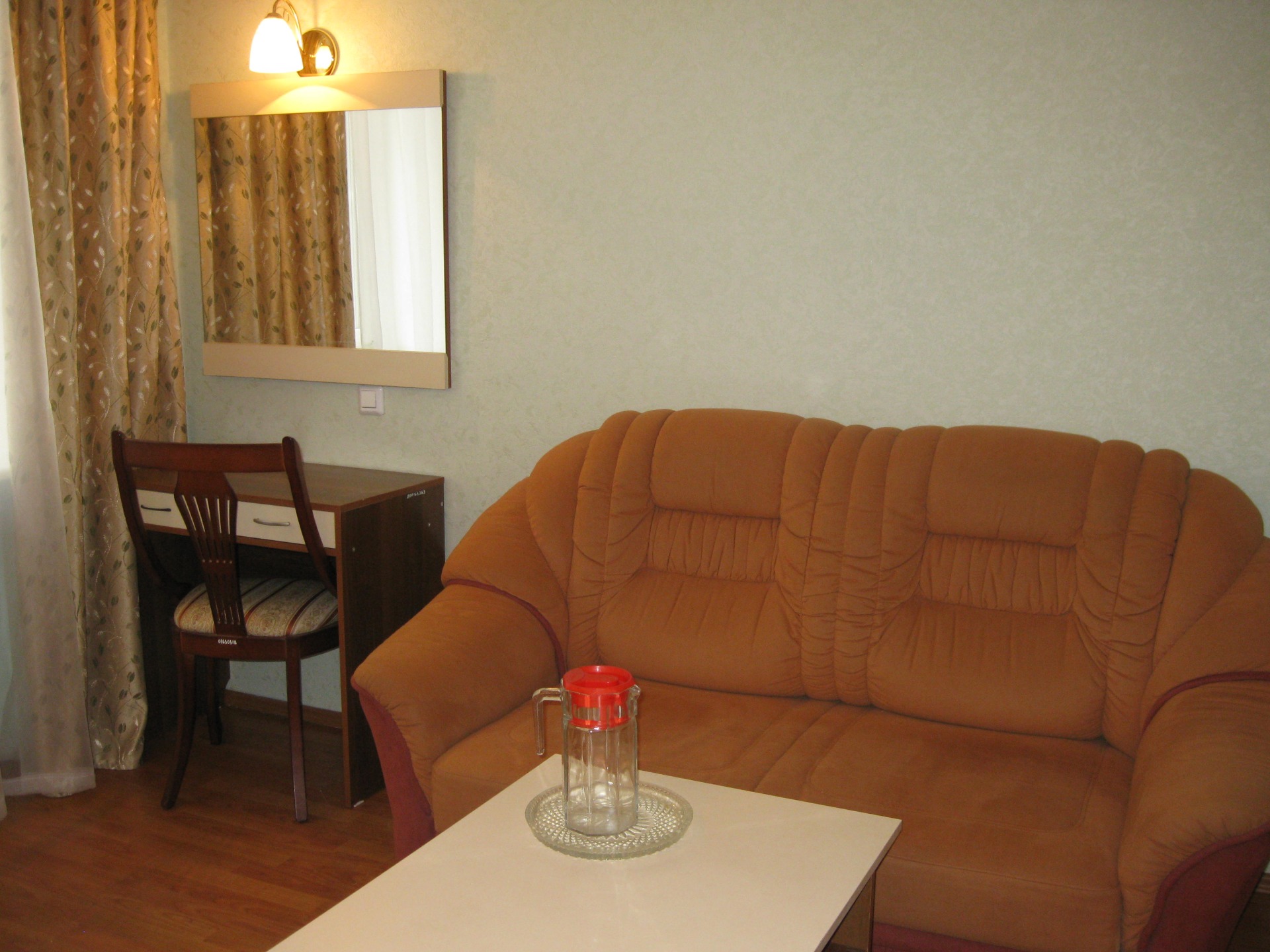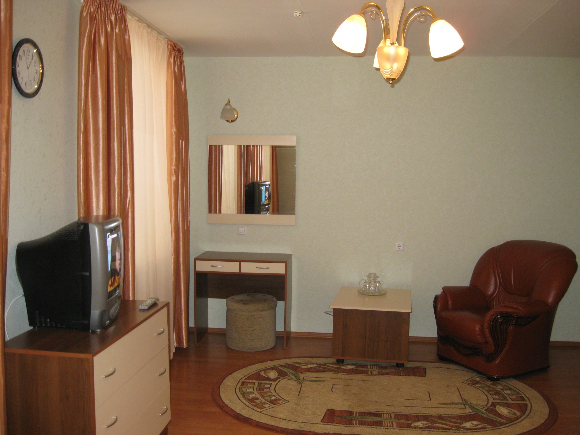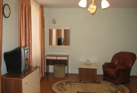 - 2-местный 2-комнатный Полулюкс (1 номер). Площадь номера: 32 кв.м. В номере: спальня с двуспальной кроватью, гостиная с мягкой мебелью, телевизор, холодильник, чайник, чайная посуда, комплект полотенец, простынь для процедур, ковер, санузел с душевой кабиной, туалет, умывальник, балкон. Номера расположены на 3 и 4 этаже.
