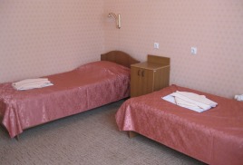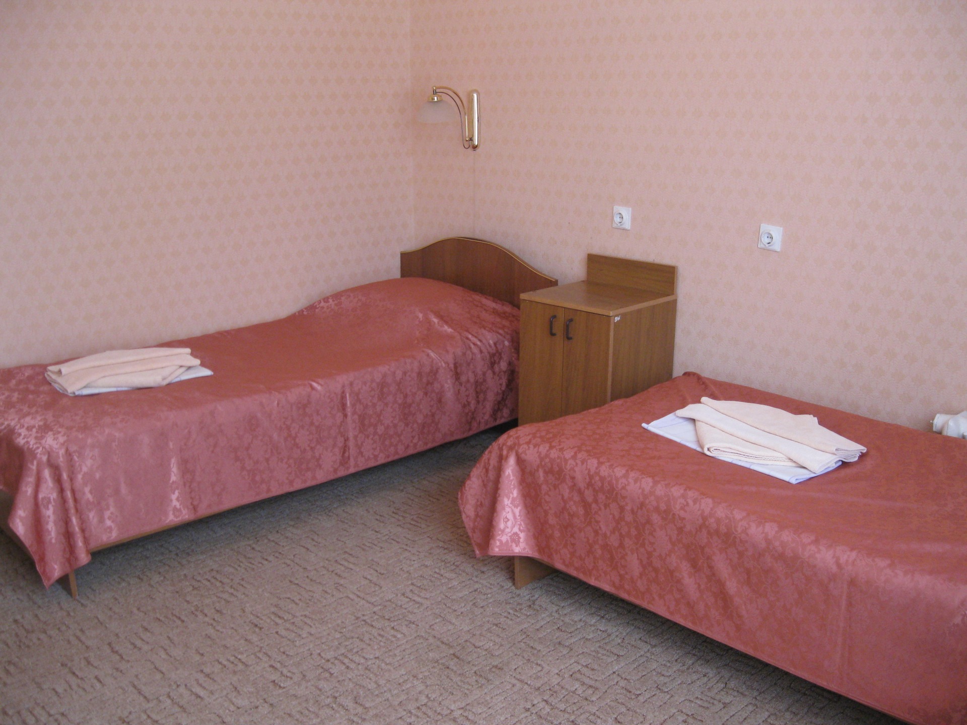 - 2-местный 1-комнатный стандарт. Площадь номера: 12 кв. м. В номере: 2 полутороспальные кровати, телевизор, набор для воды (графин, стаканы), комплект полотенец, простынь для процедур, ковер (ковровое покрытие), балкон / без балкона.