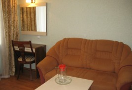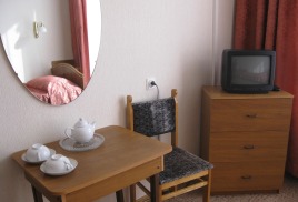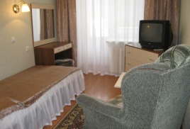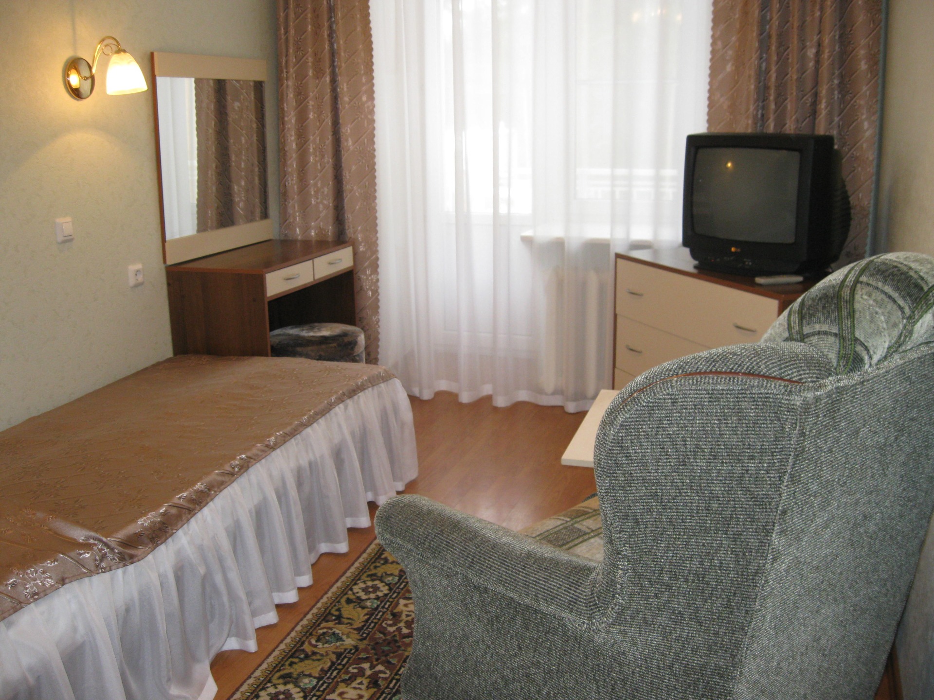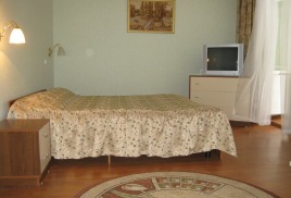 - 1-местный 1-комнатный стандарт. Площадь номера: 11,2-12 кв. м. В номере: одна полутороспальная кровать, телевизор, комплект полотенец, простынь для процедур, ковер.