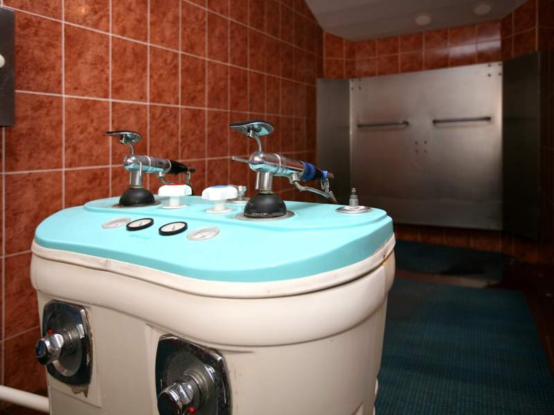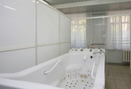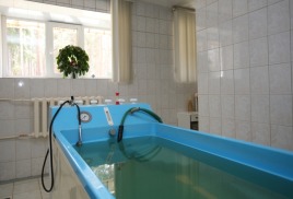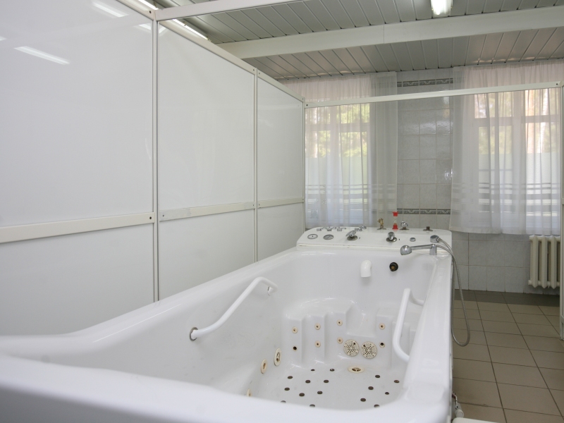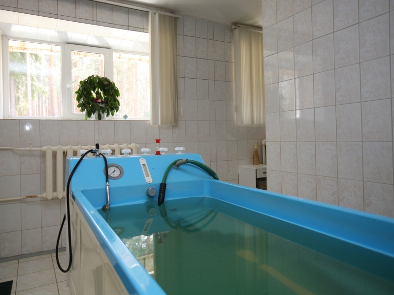 - Водолечение - ванны: минеральные, сухие углекислые, гидромассажные, жемчужные, с ароматическими маслами, хвойные,скипидарные с белой или желтой эмульсией; лечебные души: веерный, Шарко, циркулярный,восходящий, гидромассаж позвоночника, гидромассаж общий;